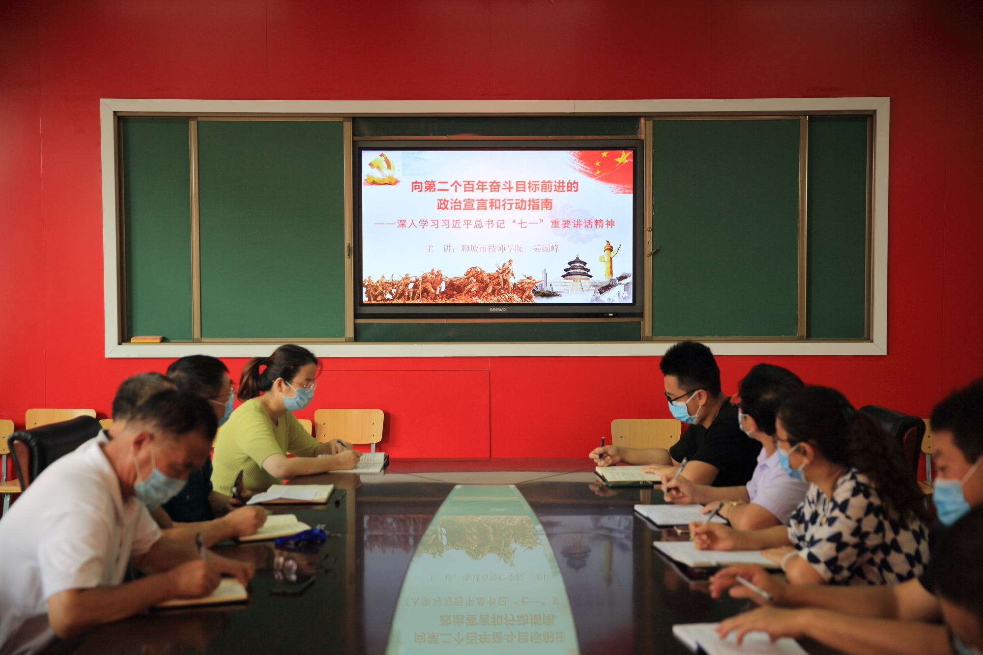 8月11日,为深入学习贯彻习近平总书记“七一”重要讲话精神,市委学习贯彻习近平总书记“七一”重要讲话精神宣讲团市社科理论界宣讲服务队走进聊城市技师学院开展宣讲。市社科理论界宣讲服务队副队长、聊城市技师学院党委委员、院长助理、宣传处处长姜国峰作了题为《向第二个百年奋斗目标前进的政治宣言和行动指南——深入学习习近平总书记“七一”重要讲话精神》的主题宣讲。