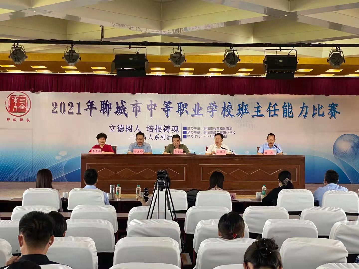 8月24日上午,2021年聊城市中等职业学校班主任能力比赛在我校拉开帷幕。聊城市教育和体育局副局长郭章记,聊城高级工程职业学校校长刘德云,聊城市教育和体育局教育工会副主任郝立,职民继科科长郭忠岭,聊城高级工程职业学校学生工作处处长王玉梅及7位特邀评委专家参加开幕式。来自全市6所中等职业学校的10名选手进行了激烈角逐。开幕式由聊城高级工程职业学校副校长崔杰主持。
