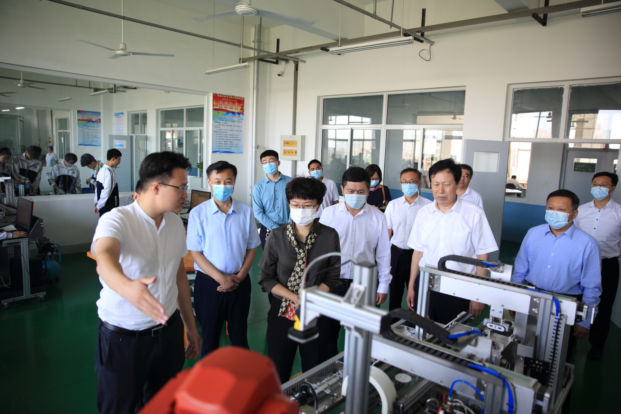 秋日校园,天蓝水碧,硕果盈枝。李长萍首先走进实训楼,详细了解学院办学情况。在智能生产线实训室,她认真观看学生操作,听取实训教师的情况介绍,与现场人员亲切交流,鼓励师生继续努力,再创佳绩。