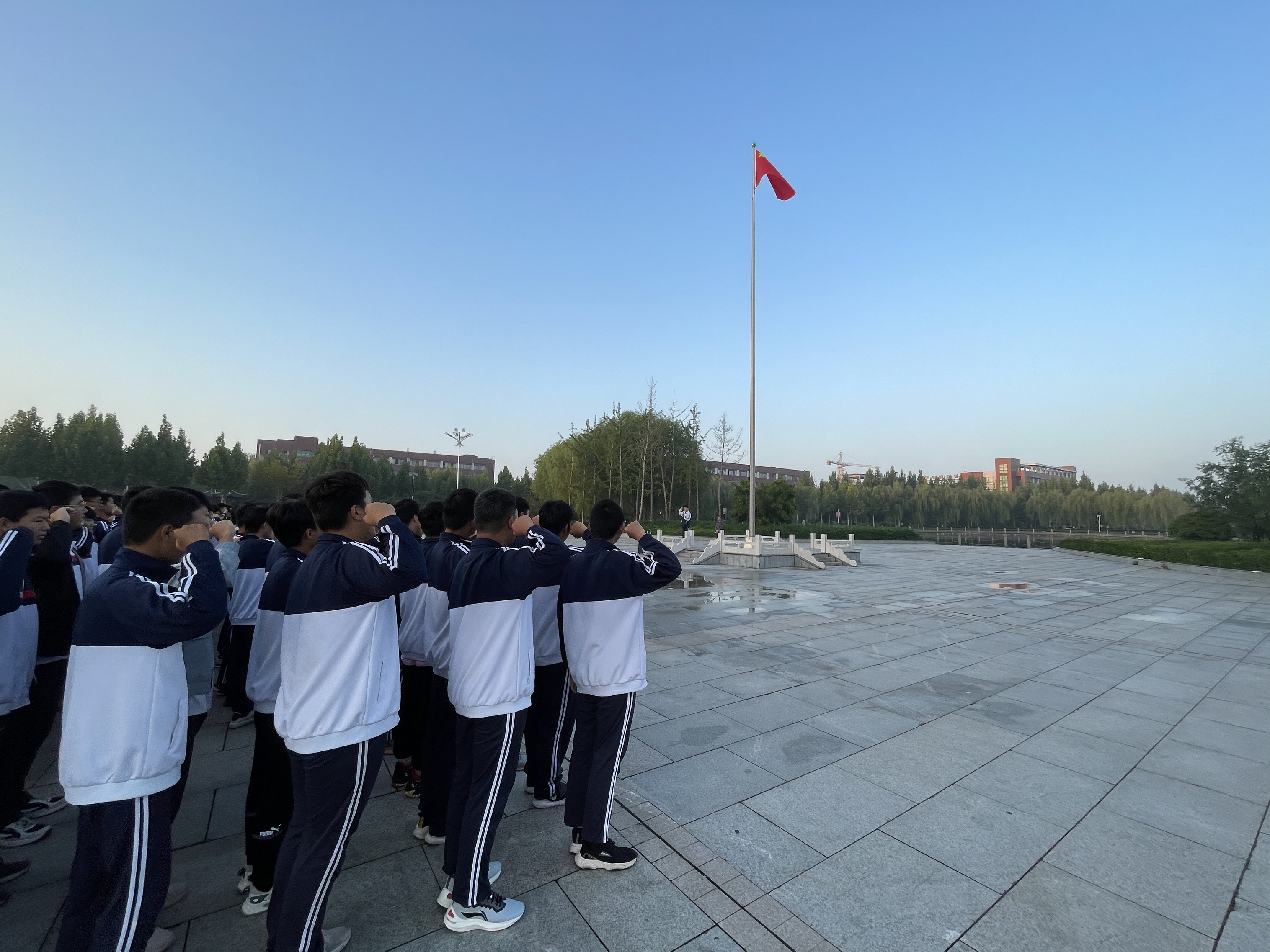 早上,师生们汇聚操场整齐列队。伴着蓬勃的朝阳,英姿飒爽的国旗护卫队队员护送国旗庄严地走向升旗台。鲜艳的五星红旗在激昂雄壮的国歌声中冉冉升起、迎风飘扬,全体师生肃立注目,齐唱国歌,整个升旗仪式庄严而神圣。随后,建筑工程系副主任黄玉果在国旗下讲话。他结合中国共产党艰苦创业的百年历史,告诉同学们要传承红色基因、牢记初心本色,学党史、强信念、跟党走。最后,学生代表带领学生们宣誓,立志做一名爱国爱党的有为少年。