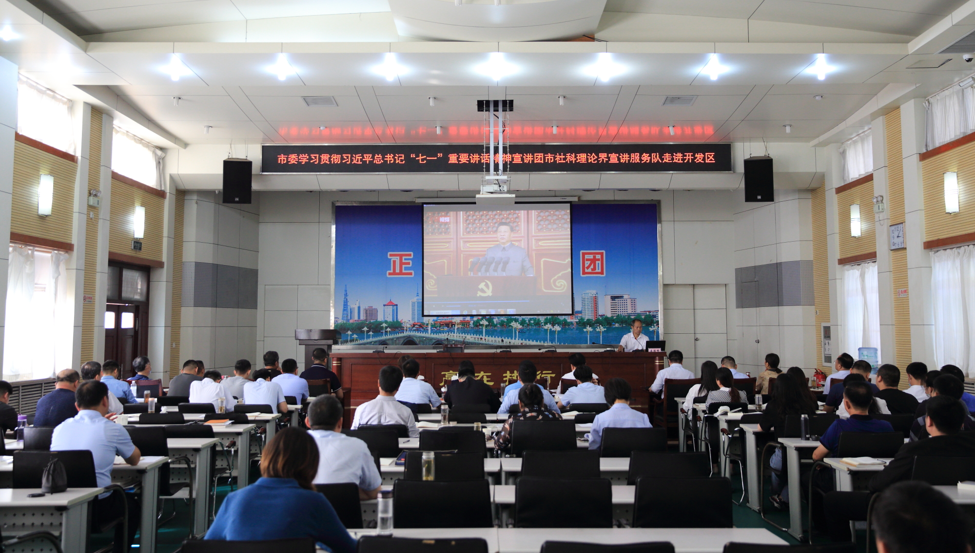 9月29日,市委学习贯彻习近平总书记“七一”重要讲话精神宣讲团市社科理论界宣讲服务队走进聊城经济技术开发区,为该区习近平总书记“七一”重要讲话精神专题学习班第三期学员开展专题宣讲,市社科理论界宣讲服务队副队长、聊城市技师学院党委委员、院长助理、宣传处处长姜国峰以《向第二个百年奋斗目标前进的政治宣言和行动指南——深入学习习近平总书记“七一”重要讲话精神》为主题进行宣讲。