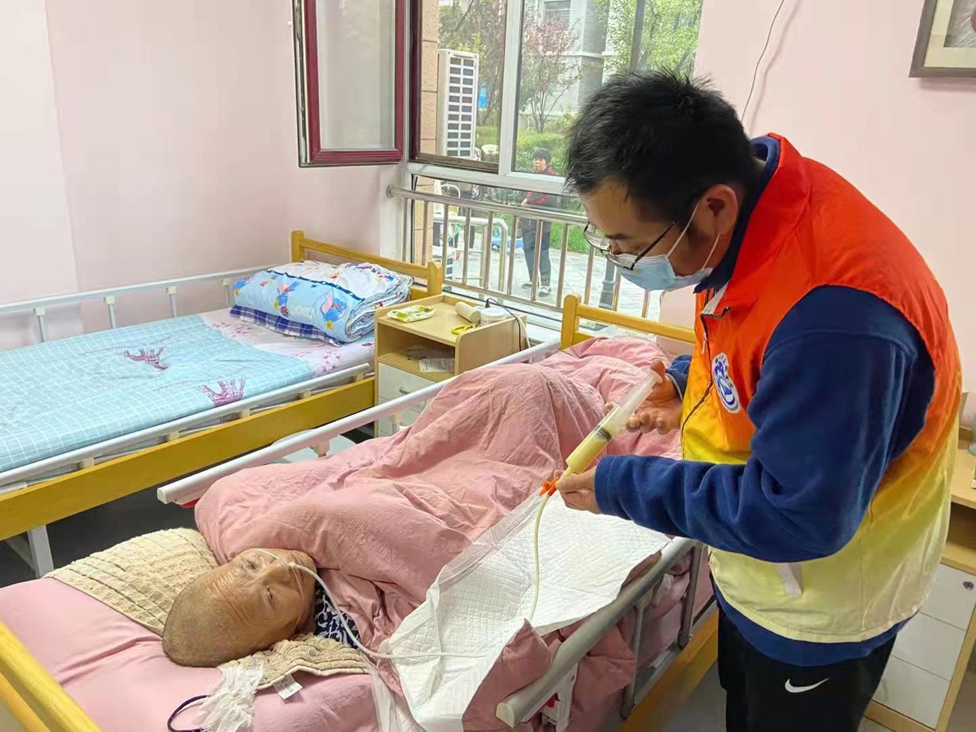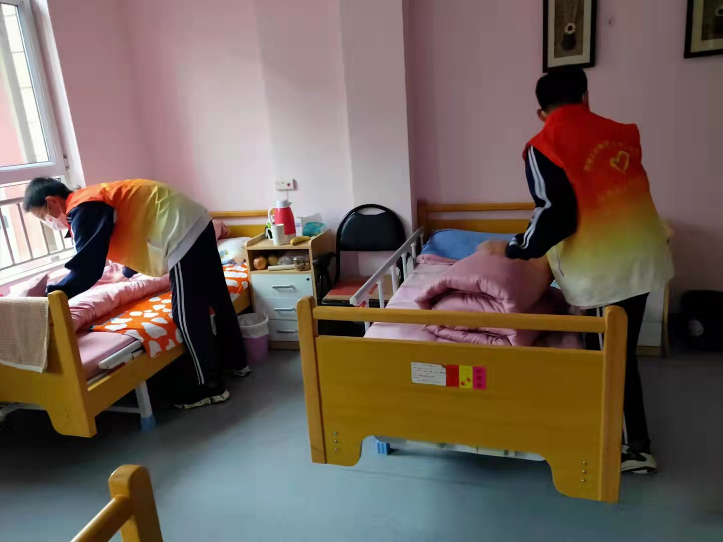 活动中,志愿者们在敬老院工作人员的安排下进行了卫生大扫除,帮老人整理内务,擦净敬老院的门窗、地面等。团总支老师们推着行动不便的老人在小区遛弯,和老人亲切的聊家常,倾听他们的心声;照顾生活不能自理的老人吃饭,了解老人的生活、身体健康状况,张立国老师更是像照顾自家老人一样细心为不方便进食的老人鼻饲,让老人们感受到亲人般的关怀与陪伴,带去心灵上的慰藉与温暖。老人开心地与这些来关心自己的“子女”交谈甚欢,喜悦之情溢于言表,眉宇之间展露笑颜。
