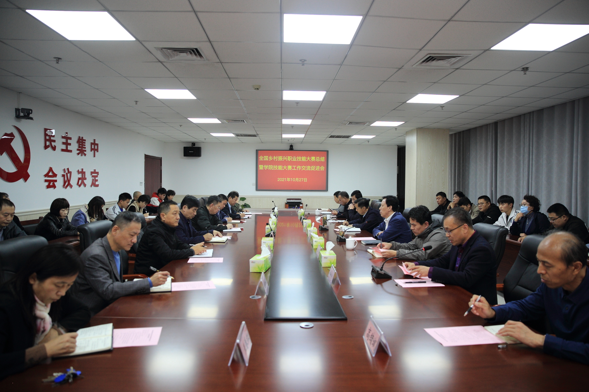 2021年10月27日下午,全国乡村振兴职业技能大赛总结暨学院技能大赛工作交流促进会在学院汇智楼C603会议室召开,聊城市人社局人事考试中心主任闫学忠,职业能力建设科科长姜伟,考试中心副科长高立厚,学院党委书记张连臣,学院党委副书记徐公义,副院长王化中等领导参加会议;会议由学院党委副书记、院长刘德云主持。学院办公室、教务处,以及各系部主任、部分省赛指导教师和部分省赛参赛选手共40余人参加会议。