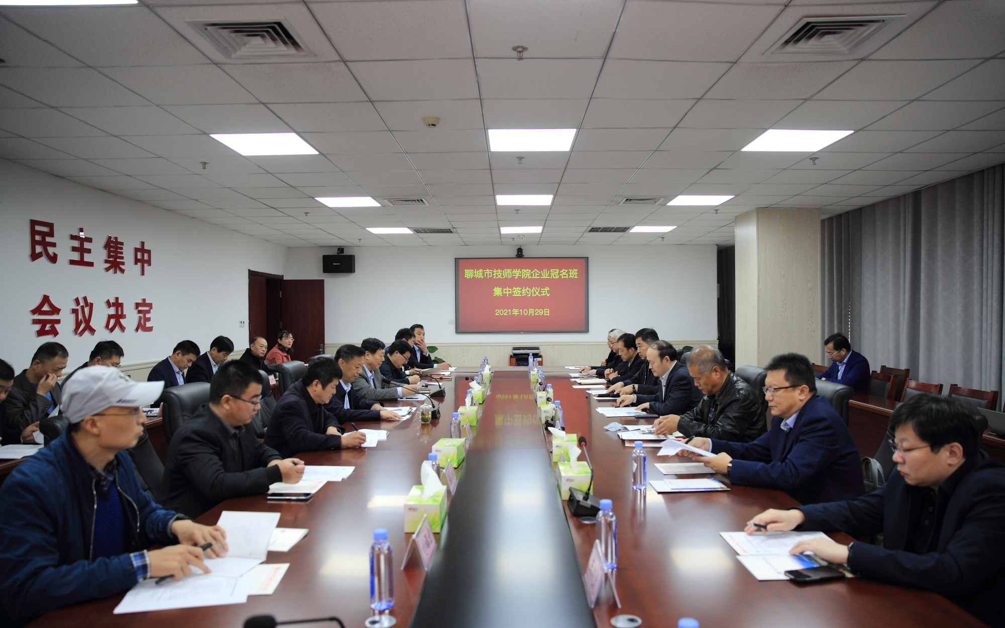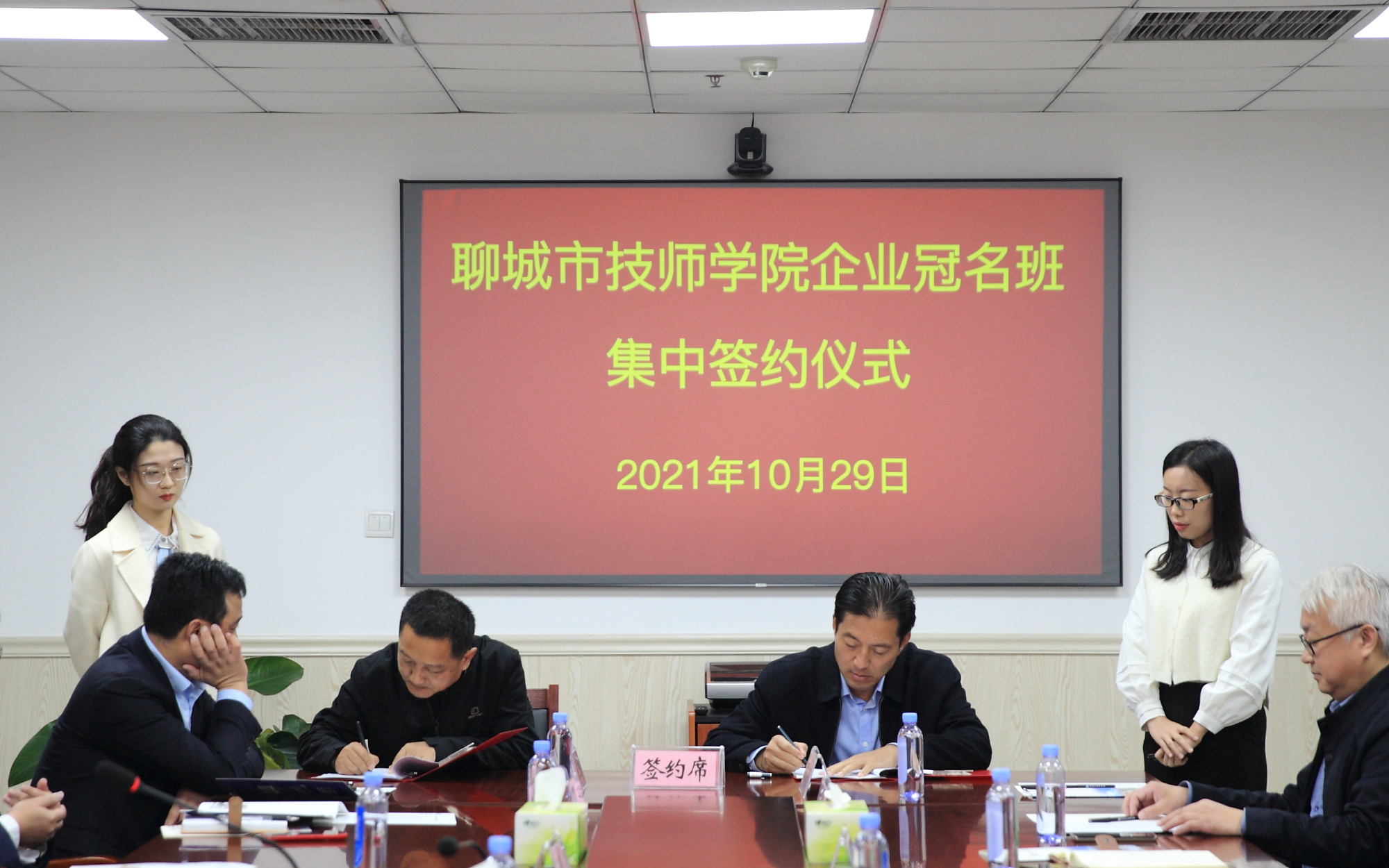 10月29日上午,我院2021年企业冠名班集中签约仪式在汇智楼C603会议室举行。学院党委书记张连臣,党委委员、副院长王化中,各系部、处室等相关部门负责人,山东日发纺织机械有限公司、山东聊建第四建设有限公司、山东易斯特工程工具有限公司等11家企业代表参加活动。王化中主持签约仪式。