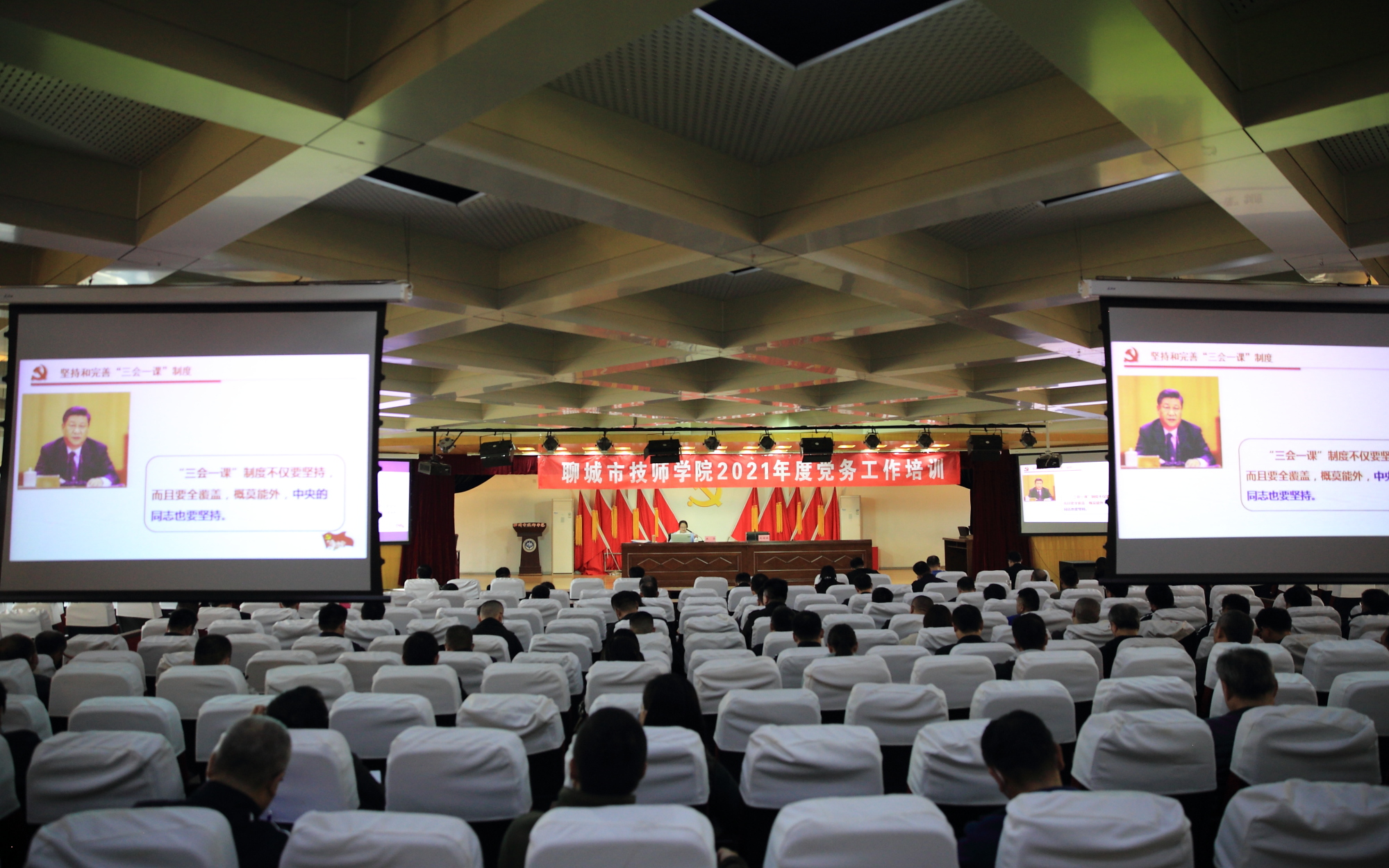 为深入贯彻落实党的十九大和十九届二中、三中、四中、五中全会精神,落实落细新时代党的建设总要求,全面提升学院基层党务工作水平,11月5日下午,学院召开2021年度党务工作第一期培训会,邀请中共聊城市委党校党史党建教研室燕华老师作题为《坚持和完善“三会一课”制度》的报告,学院党委委员、组织人事处处长高绪斌主持会议,各党支部书记、委员共85人参加会议。