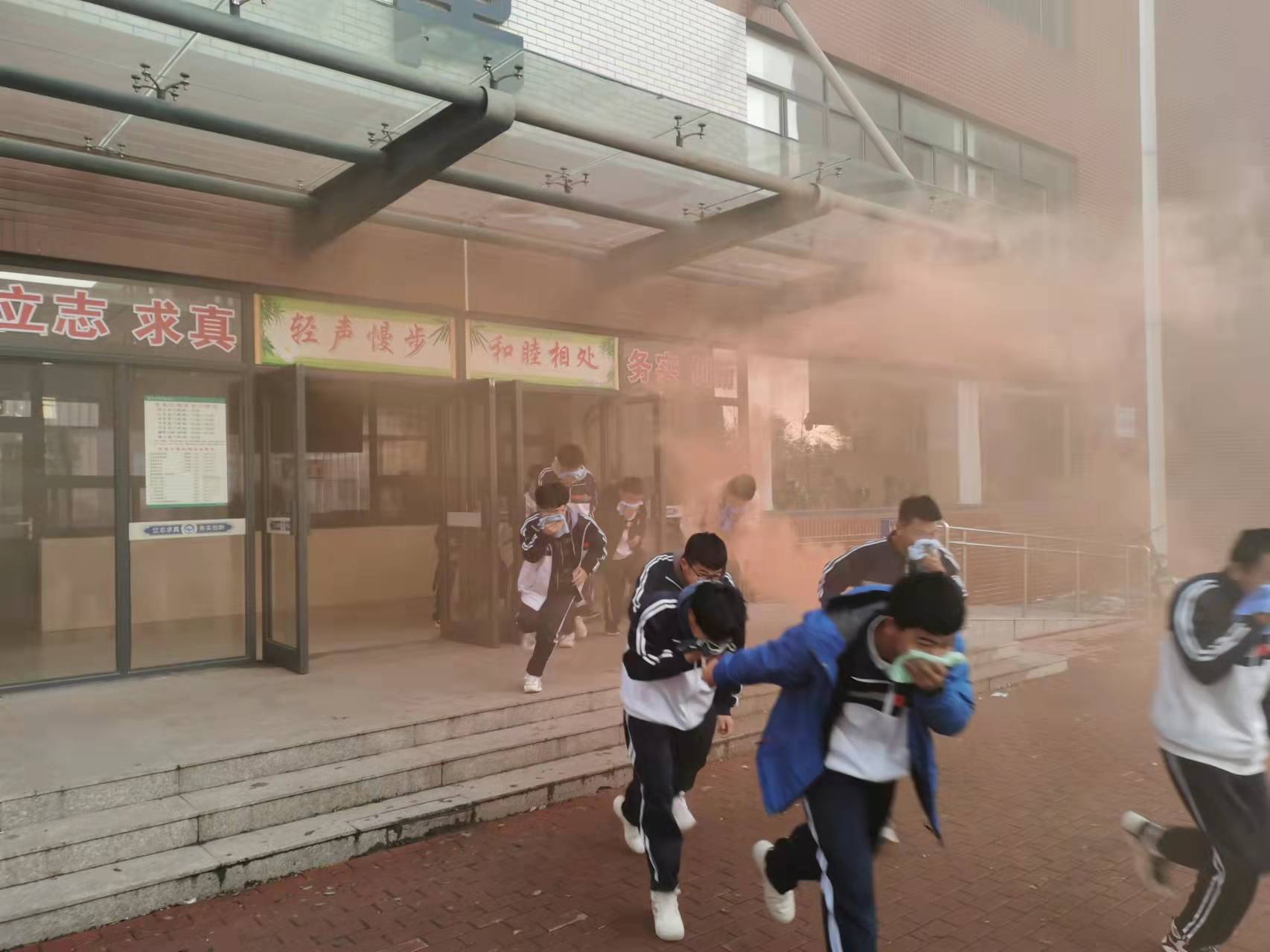 演练模拟宿舍内杂物起火。16点40分,随着警铃声响起,同学们迅速、有序地从各宿舍楼内安全通道撤离到操场和孔子广场指定的班级集结位置。保卫处立即组织人员清点人数,所有学生全部到位。
