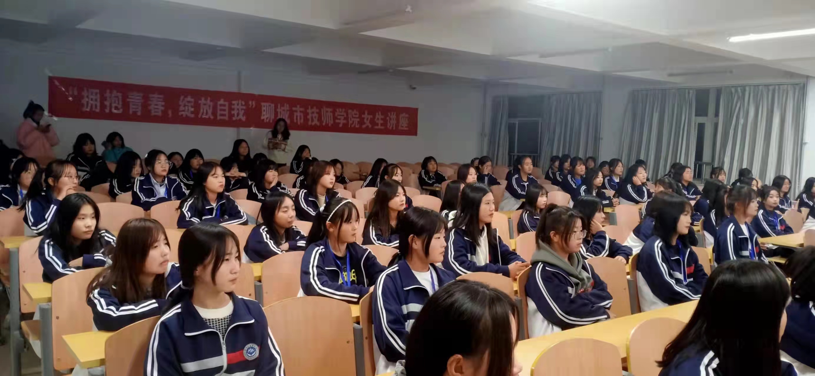 11月10日下午,聊城市技师学院一处教室里,一场名为“拥抱青春,绽放自我”的女生知识讲座正在进行。