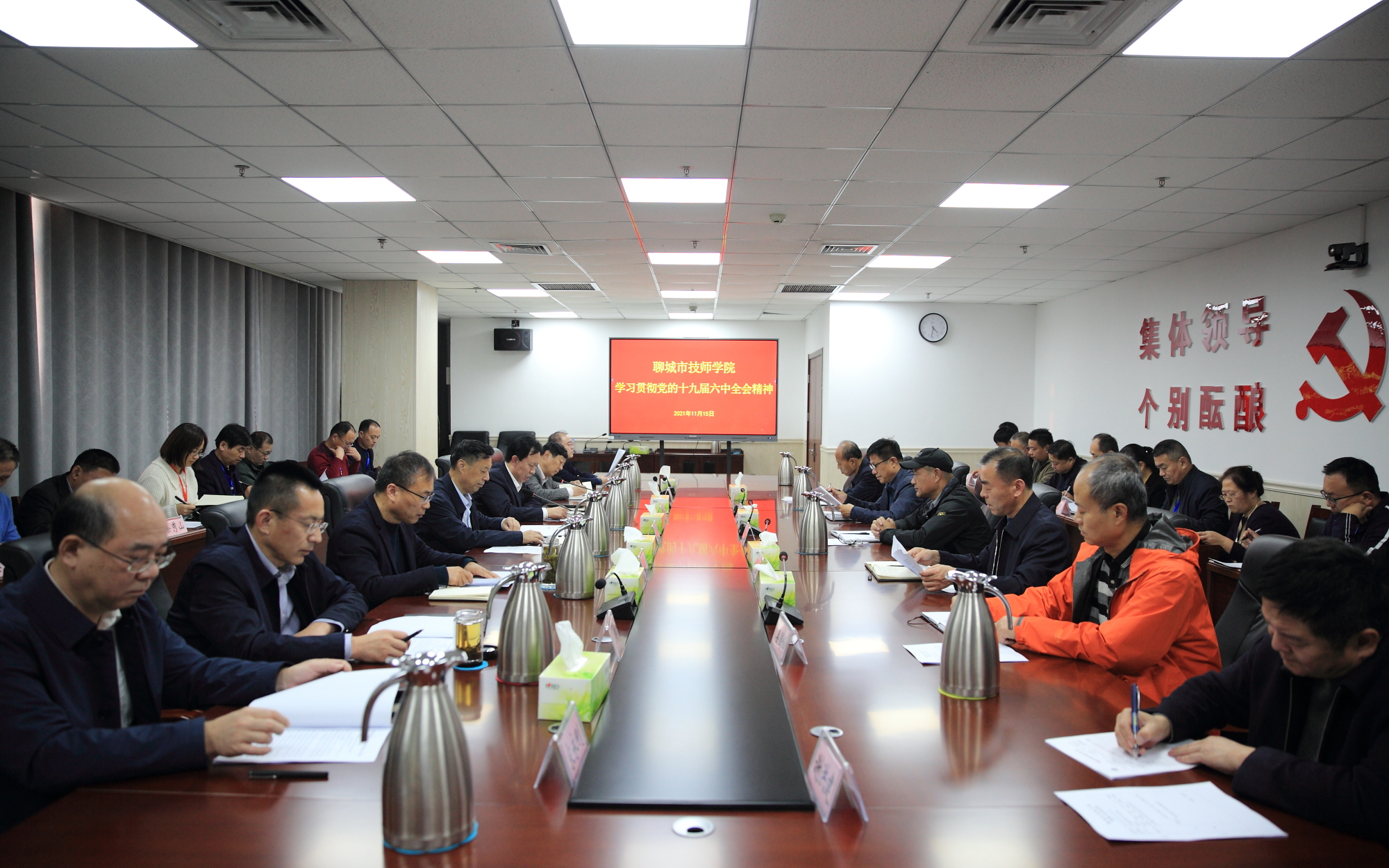 11月15日下午,学院召开党委(扩大)会议,认真传达学习党的十九届六中全会精神,研究贯彻落实意见。党委书记张连臣主持会议并讲话。党委副书记、院长刘德云传达了党的十九届六中全会精神。学院领导班子、各党支部书记参加会议。