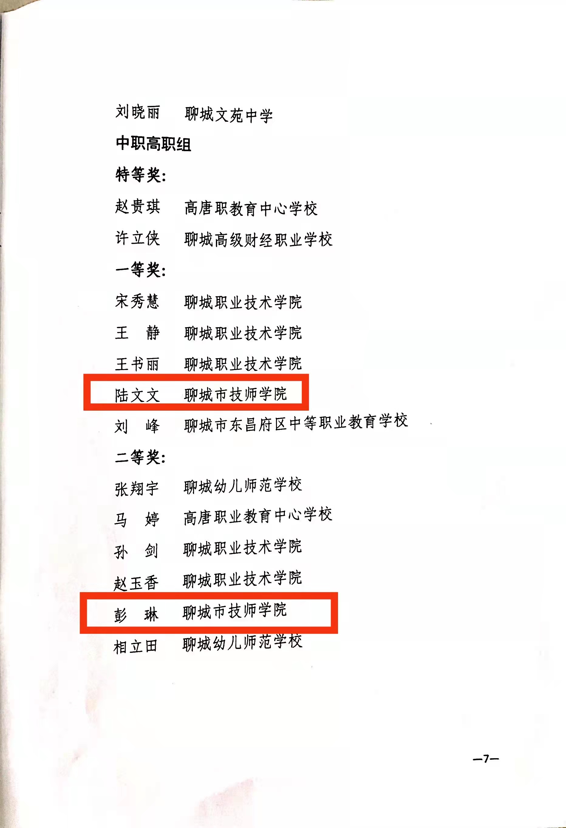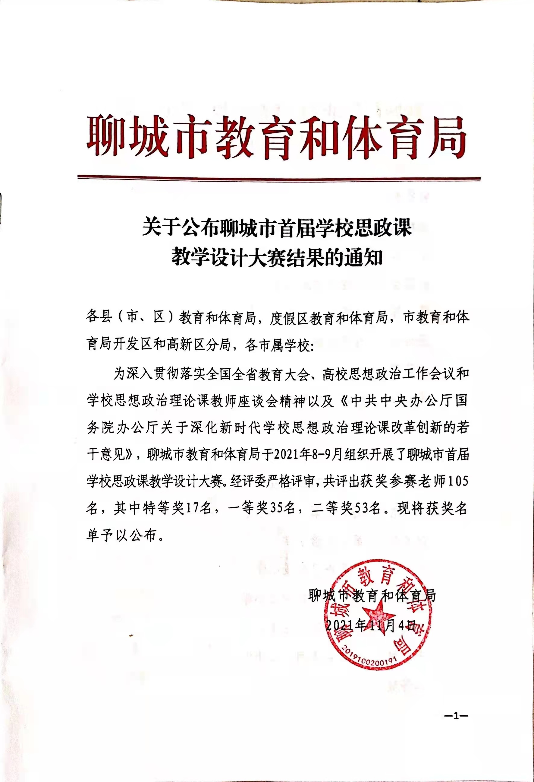 近日,聊城市教育和体育局组举办的全市首届思政课教学设计大赛结果揭晓,陆文文荣获中职组一等奖,彭琳获得二等奖。