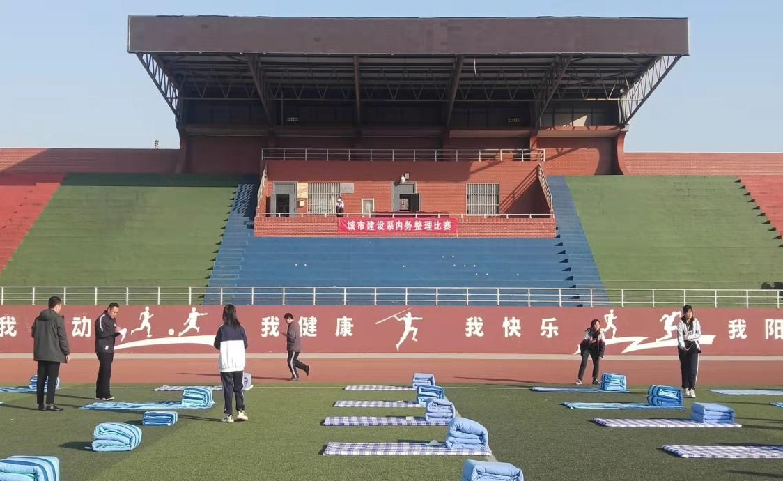 11月25日,学院城市建设系在操场举办了学生宿舍内务比赛。