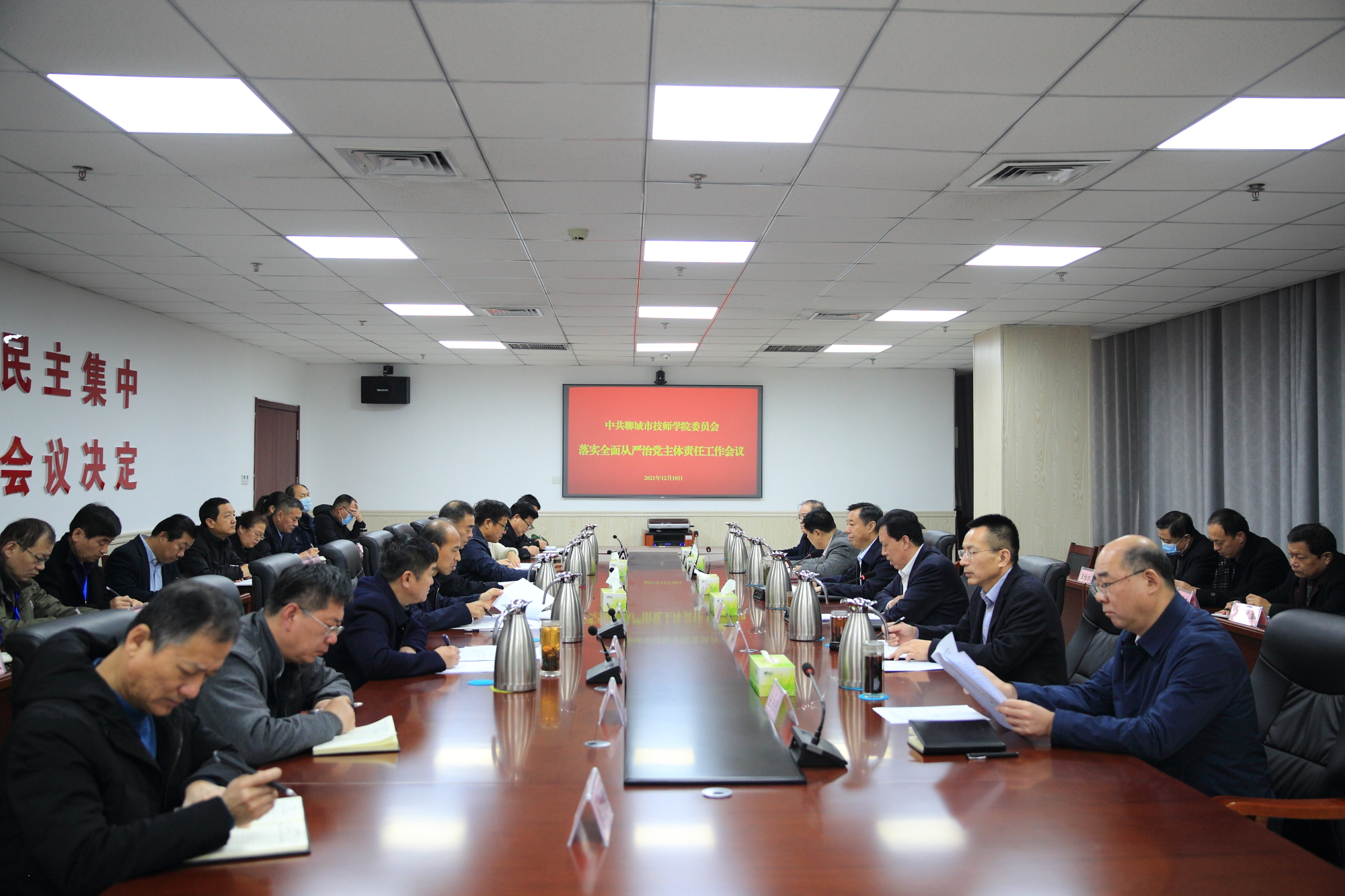 12月10日,学院在汇智楼六楼会议室召开落实全面从严治党主体责任工作会议,学院党委书记张连臣讲话,党委副书记、院长刘德云主持会议。