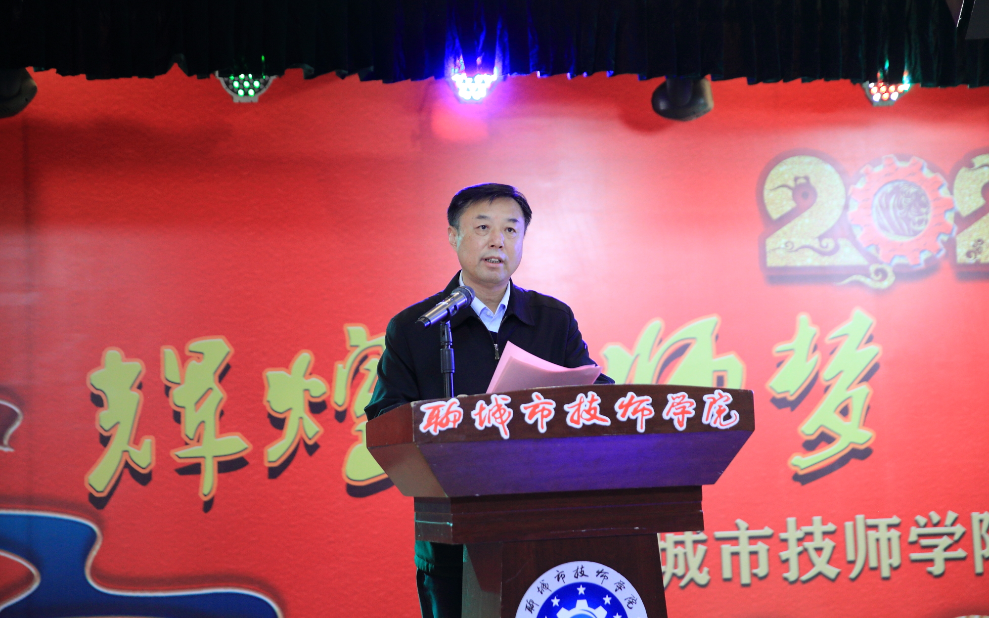 岁末辞旧迎新日,惟愿新年胜旧年。12月30日下午3点,学院举办的“辉煌技师梦,奋进新征程”——2022年元旦联欢会在勤业楼五楼学术报告厅隆重举行。学院党委书记张连臣,党委副书记、院长刘德云等党委班子成员出席了元旦联欢会,聊城高级财经职业学校党委委员、副校长吕振波应邀来到联欢会现场,500余名师生代表共同观看了本次元旦联欢会。