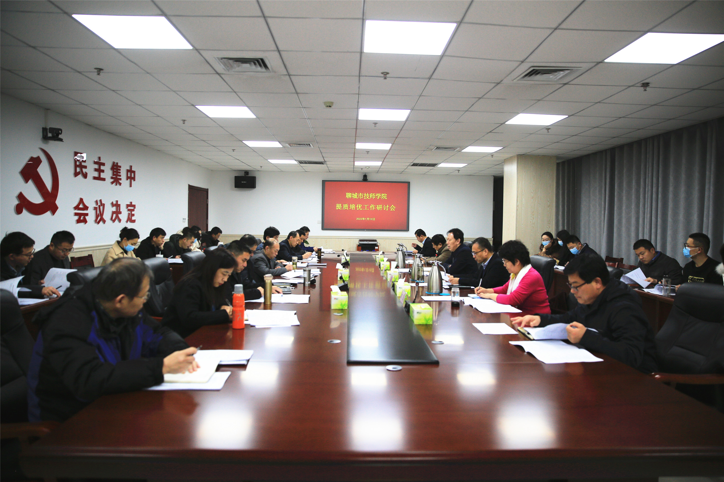 为统一思想、凝聚共识,抢抓机遇,提升学院内涵建设,1月10日,学院在汇智楼C603会议室召开2022年提质培优工作研讨会。学院党委副书记、院长刘德云主持会议并讲话,党委副书记徐公义,党委委员、副院长王化中,党委委员、学生工作处处长王玉梅及其他相关工作人员参加会议。