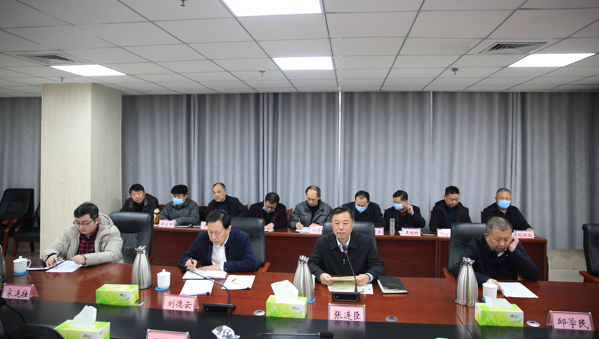 张连臣总结了学院在党史学习教育中的主要经验做法。一是健全工作机制,强化组织领导。中央党史学习教育动员大会召开后,学院立即行动,把党史学习教育作为一项重要政治任务来抓,召开会议研究实施方案,成立党史学习教育领导小组,召开党史学习教育动员大会,认真组织实施,稳步扎实推进,确保取得实效。二是突出全员研学,学史明理赓续红色血脉。党委班子成员示范学,利用主题党日、对外宣讲、主题团日、开学第一课等活动分层次全员研学。三是突出载体创新,学史增信讲好党史故事。线上线下相结合、打造红色云现场、同践行“繁森精神”相结合,结合自身特点,发挥资源优势,不断创新学习方式方法,真正让党史学习教育入脑入心。四是突出典型引领,学史崇德弘扬榜样精神。传承红色基因、做好现场教学、关心关爱志愿服务激发学习热情,感受红色政权来之不易,效果显著。五是立足岗位实践,学史力行践行初心使命。结合“三遍访”开展职业教育大调研、助力乡村振兴、扎实开展“我为群众办实事”活动,把党史学习教育成果转化践行初心使命的力量。