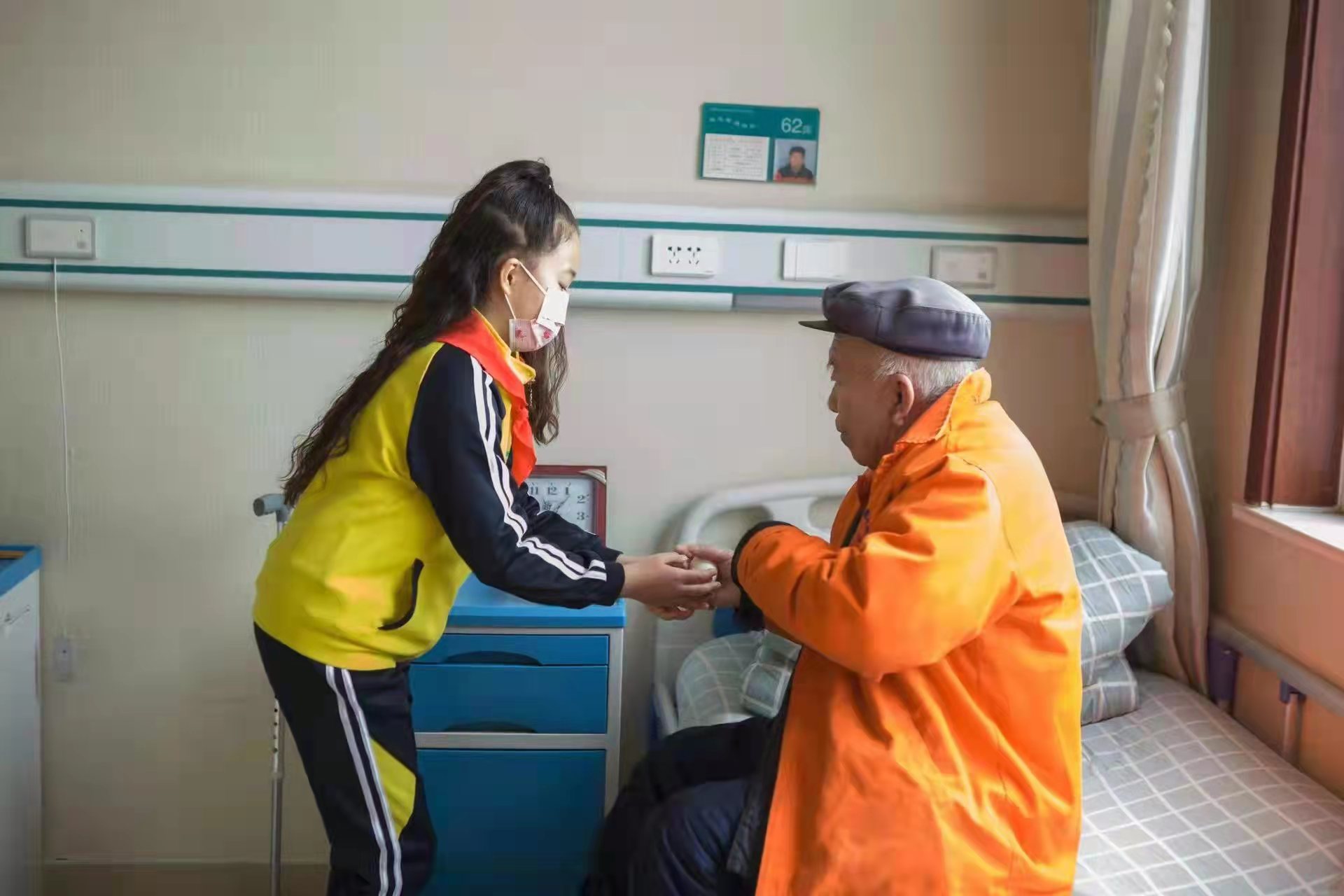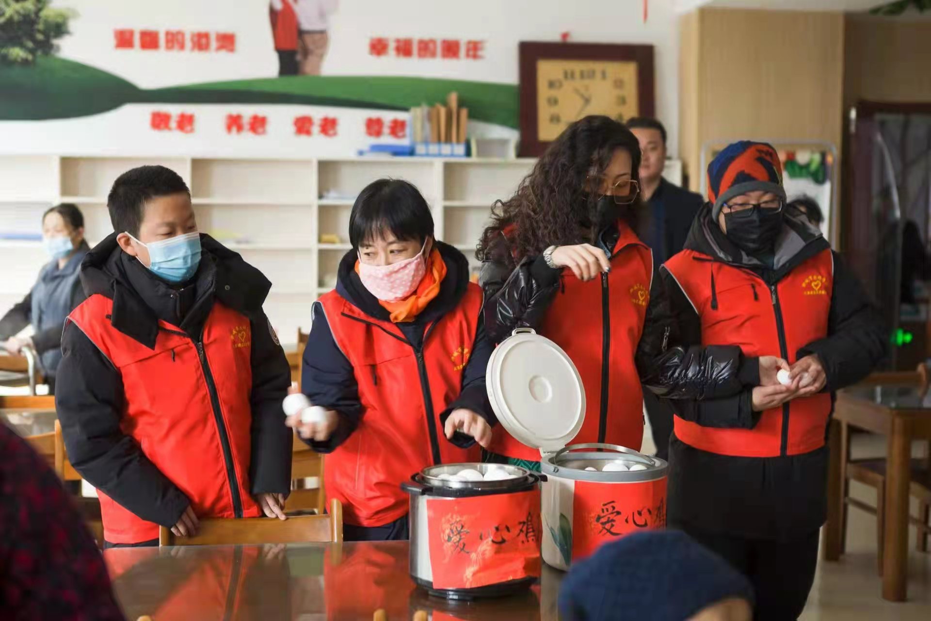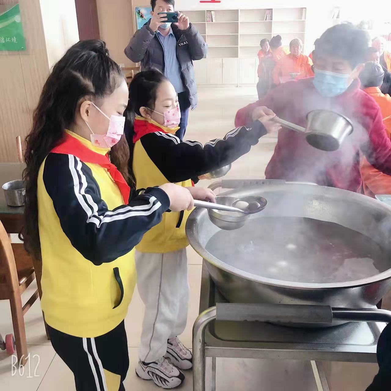上午10点,李新宁老师带着两个女儿载着100袋冷冻元宵,刘俊萍老师带着两个儿子拎着煮好的100个热鸡蛋一起来到敬老院,将这充满温情的节日礼物送到敬老院值班领导手里。