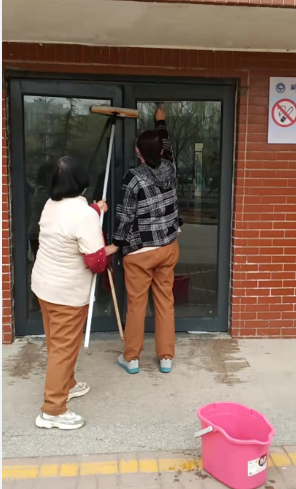 由于疫情原因学生已离开学校,平日充满活力的校园较往常相比多了一份安静。在这个春暖花开的时节,校园内一向默默无闻的校园保洁员,却一下变得格外引人注目。