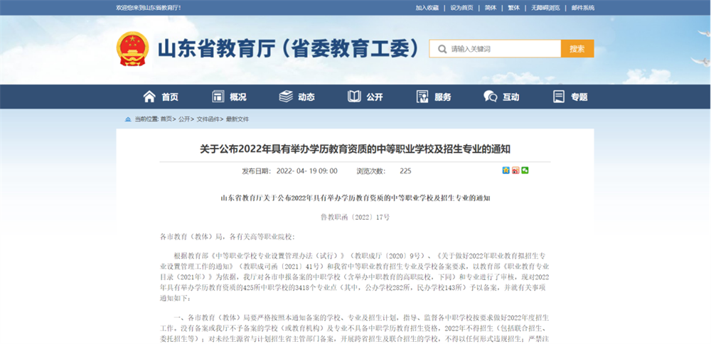 根据近日发出的《山东省教育厅关于公布2022年具有举办学历教育资质的中等职业学校及招生专业的通知》(鲁教职函〔2022〕17号),我校申报的6个新设专业通过审核,予以备案。这6个新设专业为:建筑智能化设备安装与运维、新能源汽车制造与检测、智能设备运行与维护、智能化生产线安装与运维、数字媒体技术应用、婴幼儿托育。