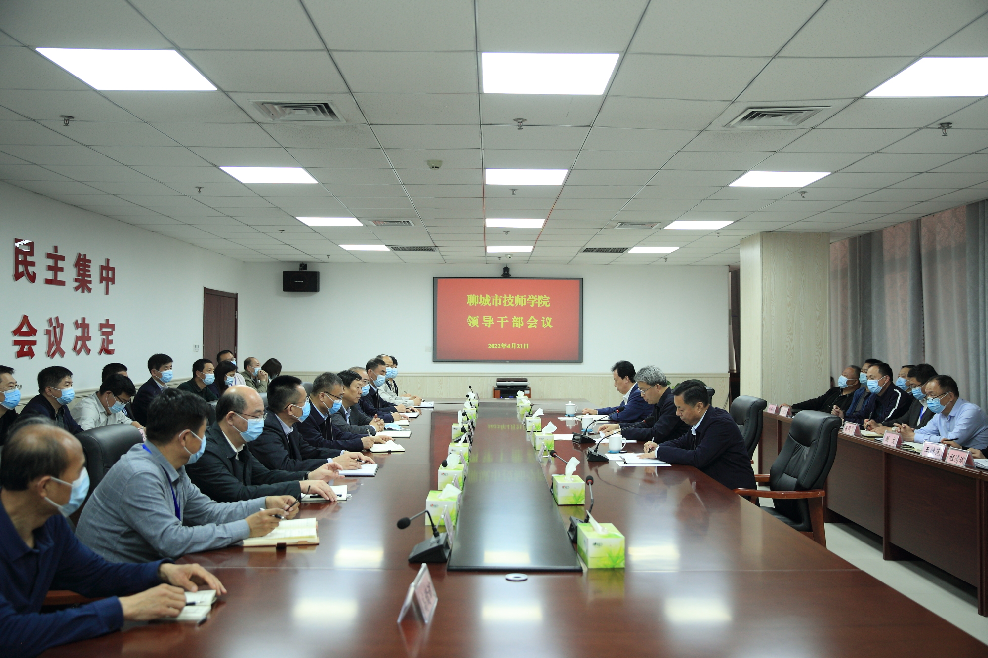 4月21日下午,学院领导干部会议召开。市委常委、组织部部长陈波出席会议并宣布学院主要领导同志职务调整的决定:经省委研究决定,因年龄原因,张连臣同志不再担任中共聊城市技师学院委员会书记职务;经市委研究决定,刘德云同志临时负责市技师学院全面工作。学院全体班子成员、中层干部正职近40人参加会议。会议由张连臣主持。