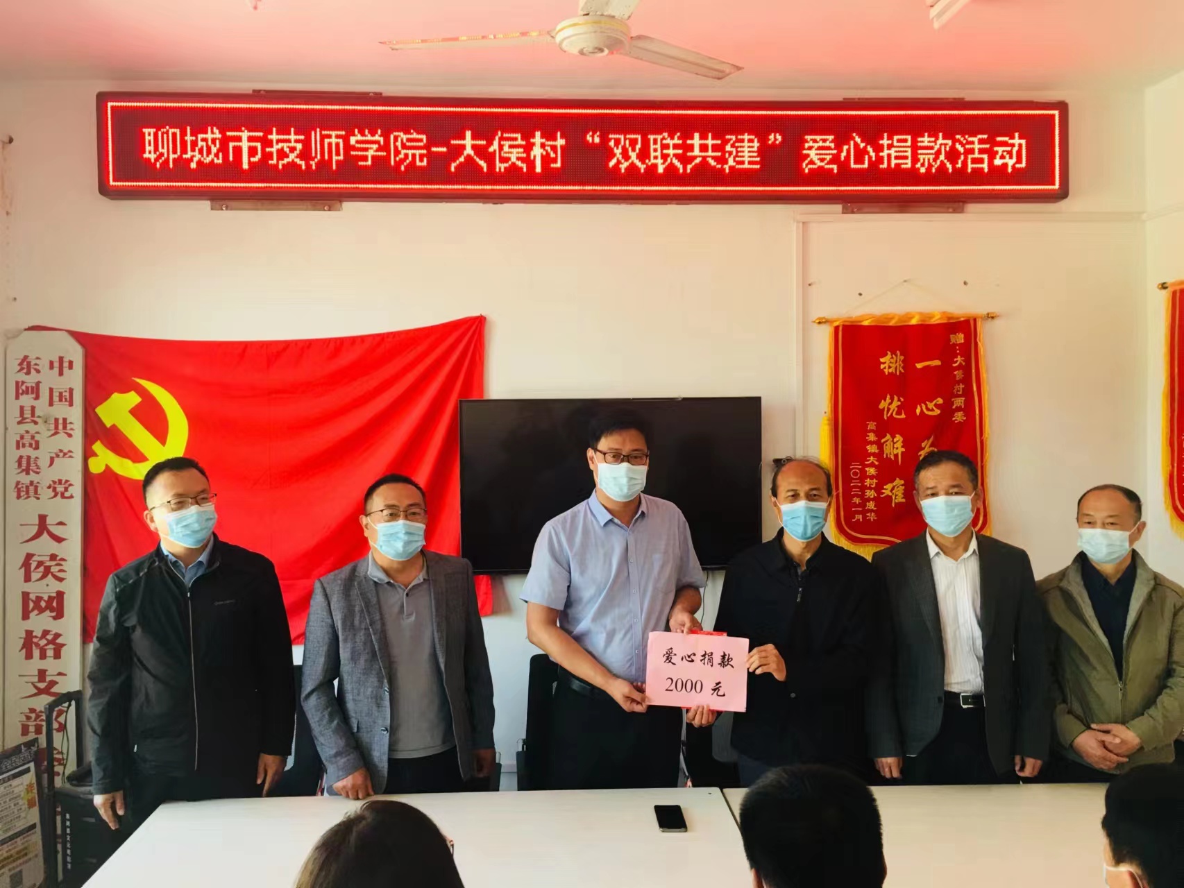 5月17日上午,东阿县高集新村大侯村党员活动室内,村委委员侯庆辉代表全村接过2000元爱心款。这是来自聊城市技师学院几个基层党支部的40名党员共同的温暖。