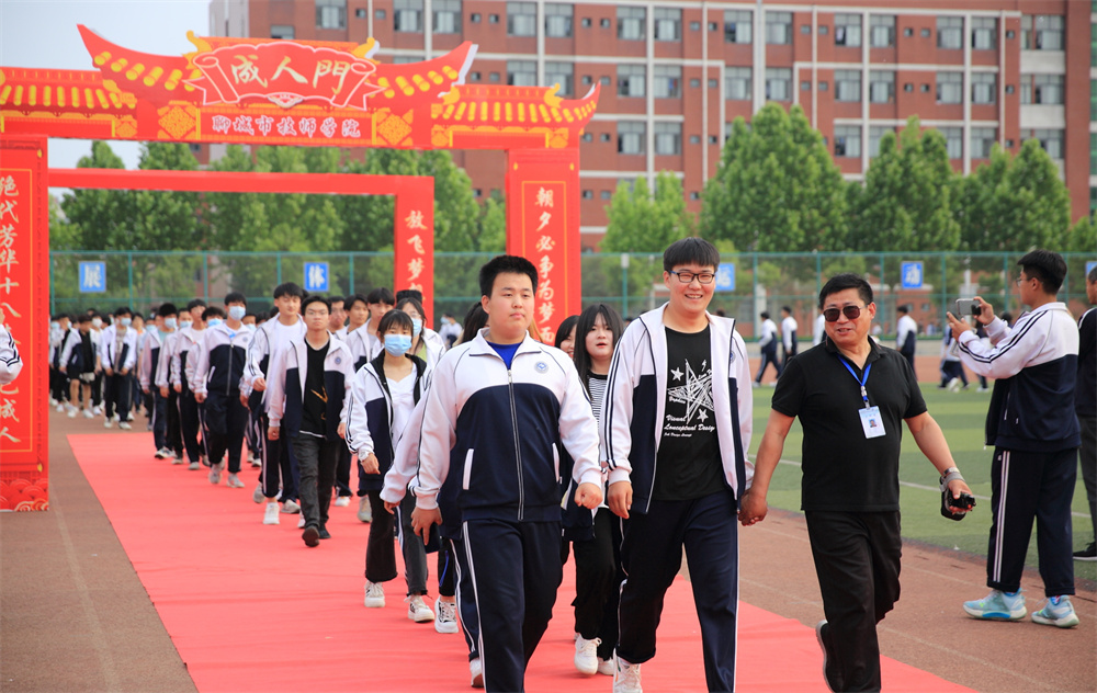 “你好,18岁!”伴着激昂的呐喊、坚定地步伐,全体学生在老师和家长的陪伴下跨过成人门,迎接美好的未来!