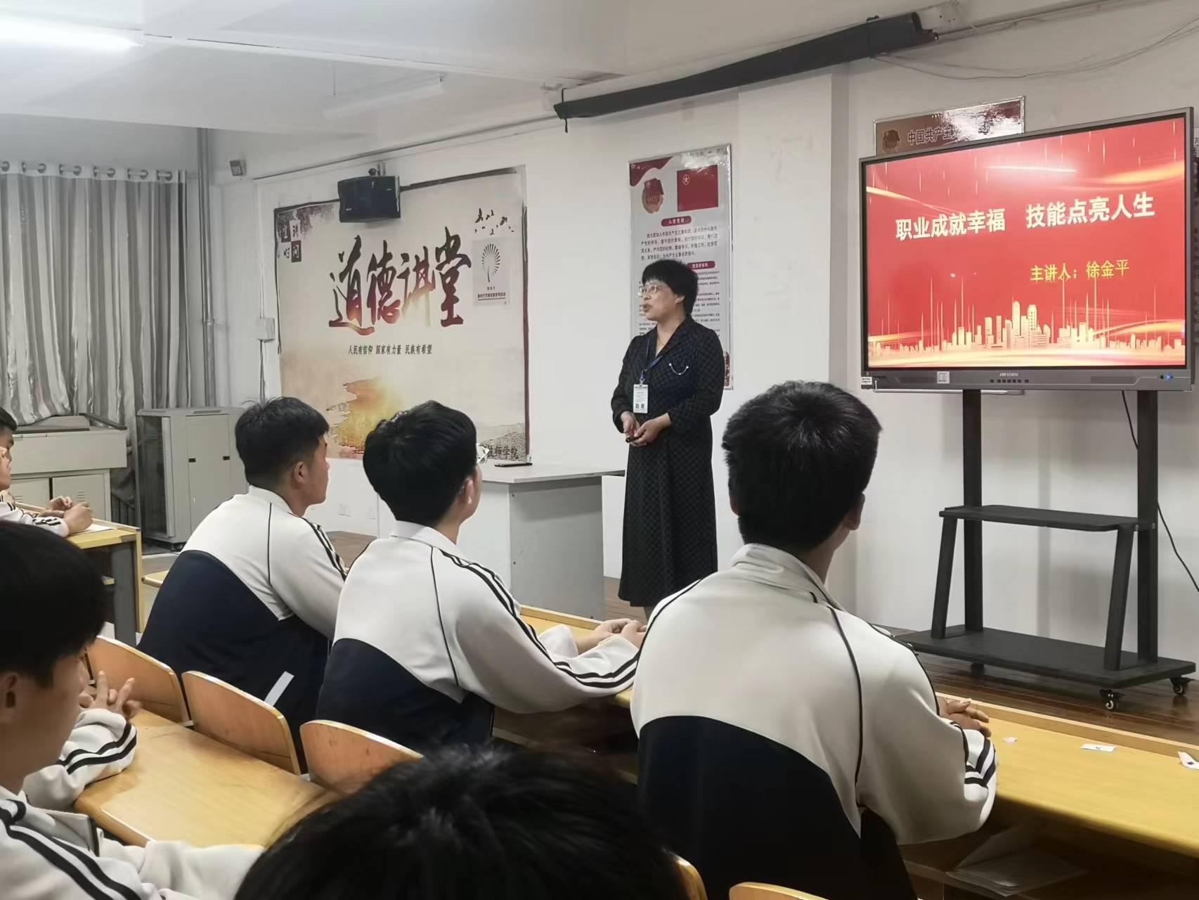 徐金平分析新时代背景下学院全体师生肩负的使命和责任,引导学生明确学习的目的和意义,激发学习热情;鼓励大家身处职业院校,同样大有可为。