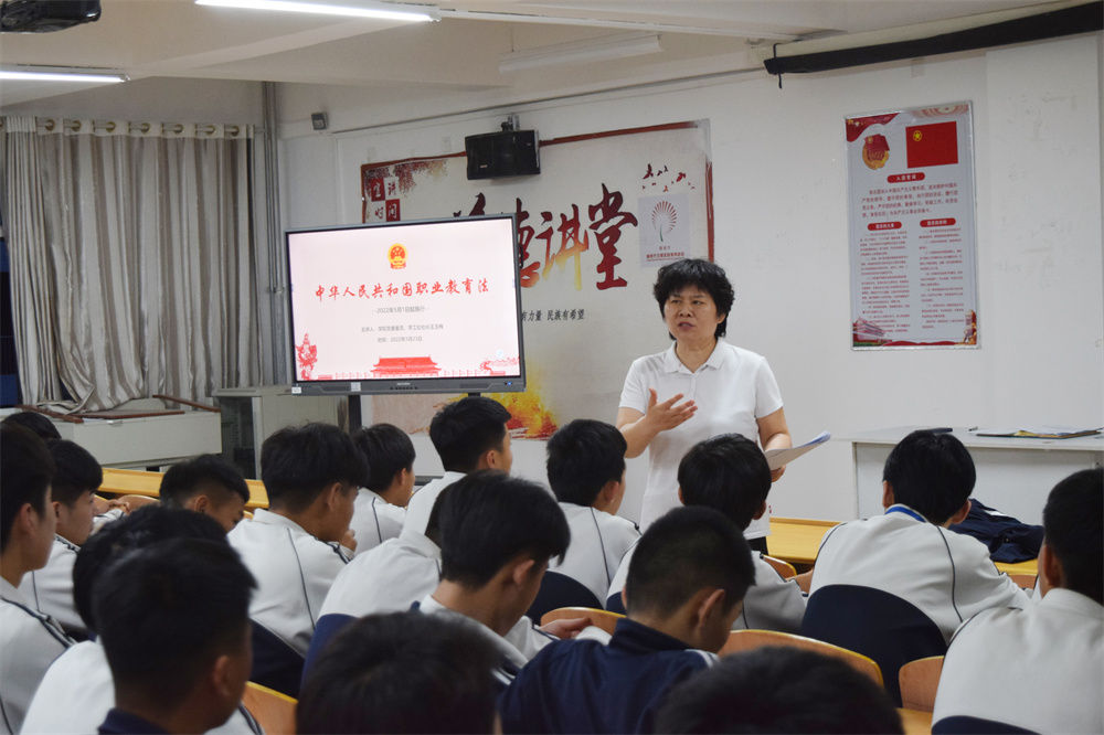 “同学们,千军万马过独木桥的时代已经过去,职业教育迎来了最好的春天,我们有理由相信,职业教育学生在职业发展上将更加大有可为。”5月23日,建筑工程系举办《中华人民共和国职业教育法》学习大会,学院党委委员,学生工作处处长王玉梅宣讲。