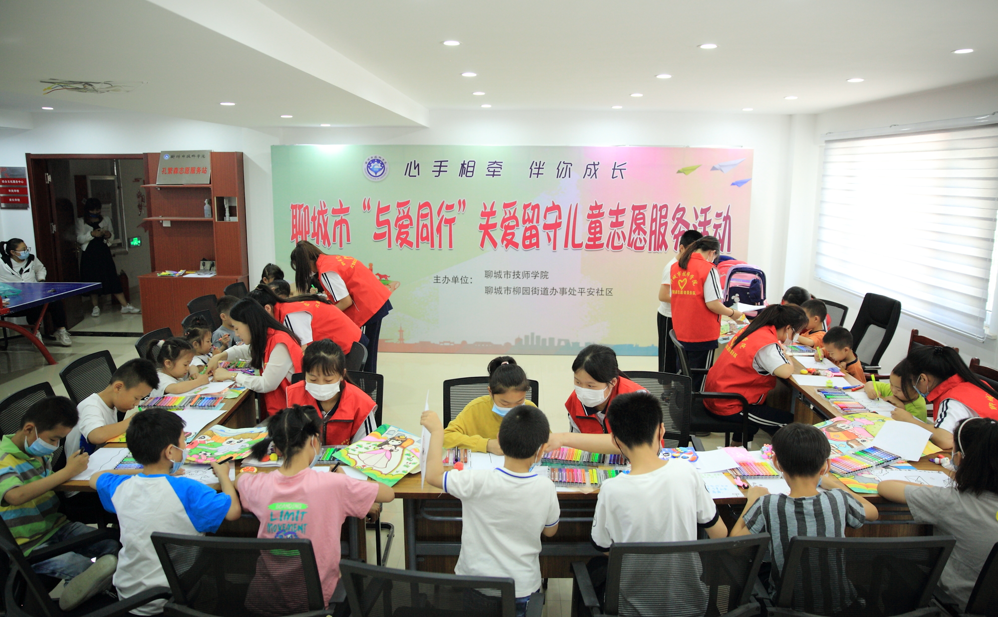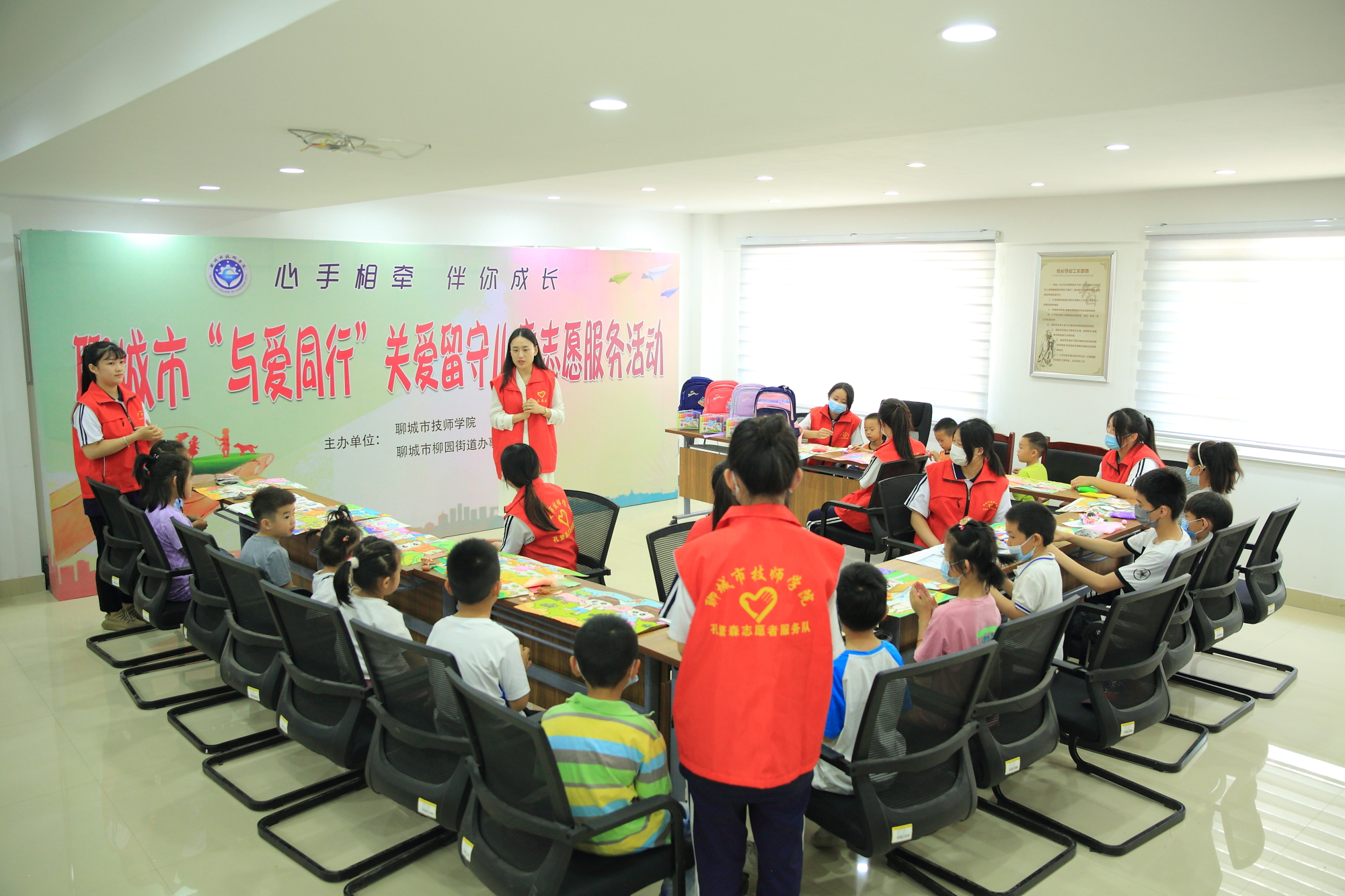 在“六一”儿童节到来之际,为弘扬志愿服务精神,关爱留守儿童,5月28日上午,“心手相牵 伴你成长”聊城市“与爱同行”关爱留守儿童志愿服务活动在柳园街道办事处平安社区活动室举行。本次活动由聊城市技师学院和平安社区共同举办,平安社区留守儿童及工作人员、学院宣传处、团委、学生工作处、学前教育系师生志愿者代表40余人参加了活动。