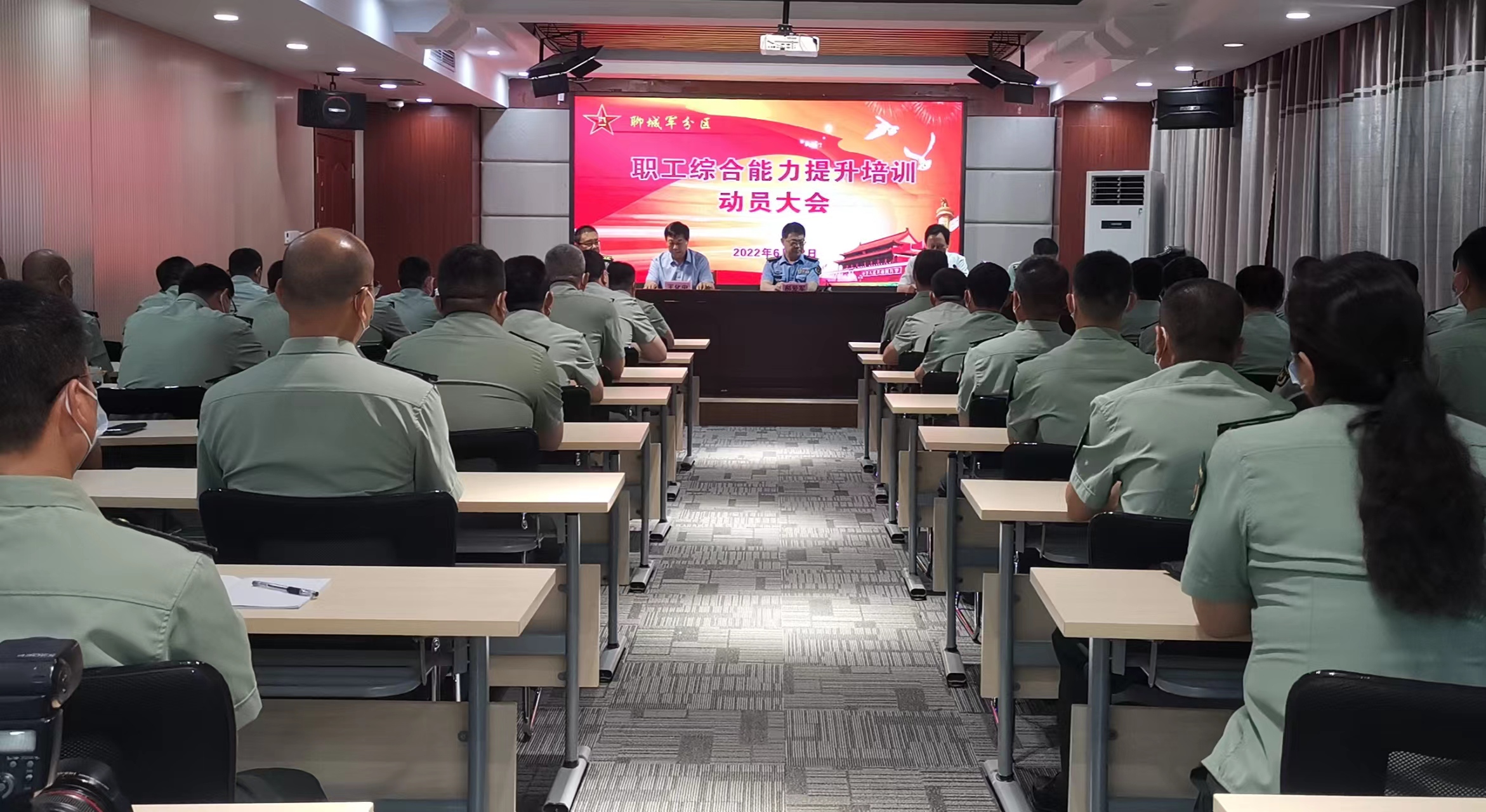 聊城军分区职工综合能力提升培训于2022年6月12日下午在院培训中心开班。聊城市委常委、军分区政委郝爱军,学院党委副书记、院长刘德云,党委委员、副院长王化中及来自八个县市区的42名学员出席培训动员大会。
