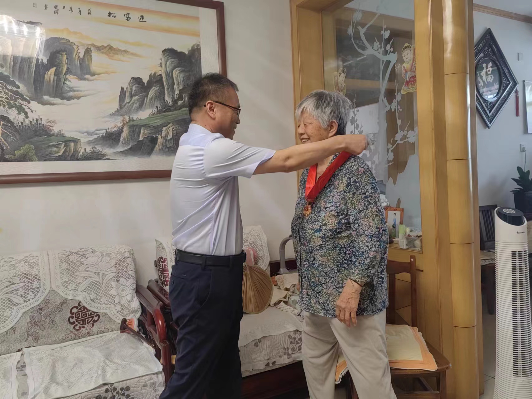 在老党员孙秀英家中,刘德云与老同志促膝长谈,详细了解老同志的身体和生活近况,并亲手为她佩戴上纪念章,感谢她为党的事业和学院发展做出的贡献。刘德云说,学院多年来的发展进步离不开老党员的支持和帮助。老党员们怀着对党和国家事业的无限忠诚,高举旗帜、勇挑重担,为学院各项教育事业发展付出了全部精力,做出了突出贡献,我们要从他们身上汲取精神和力量,转化为推动学院各项工作的强大动力,奋力开创学院高质量发展新局面。同时叮嘱组织人事处工作人员要时刻关心照顾好老党员的日常生活,积极为他们办实事、解难题,为老同志安享晚年创造更好的条件。
