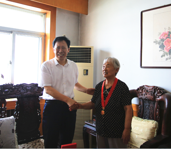 在老党员朱焕菊家中,徐公义亲切地与老同志拉家常,详细询问她的生活状况。在为朱焕菊戴上“光荣在党50年”纪念章后,徐公义向她介绍了学院各项事业发展情况和取得的骄人成绩,告诉她现在大家团结一致,奋发进取,学院各项事业都取得了高质量发展。徐公义对组织人事处工作人员说,一定要多关爱老党员,及时了解他们的所需所盼,及时帮助他们解决生活中的困难,切实把党的关怀和温暖送到他们心坎上。