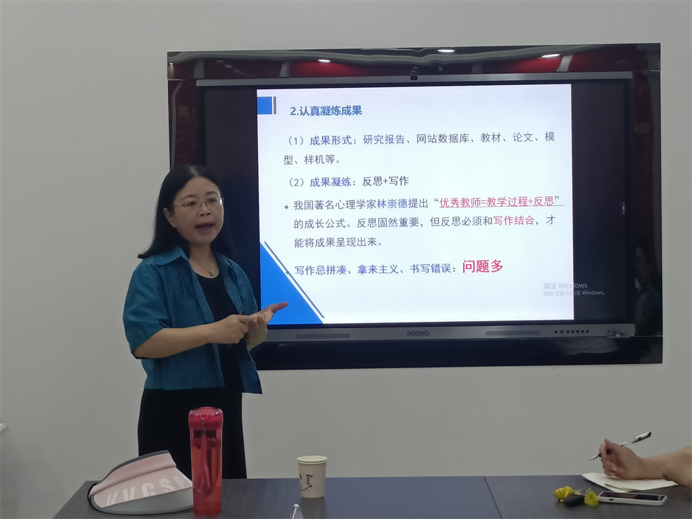 刘殿红从课题研究对学校和教师的意义讲起,到课题的获取渠道、评议标准,再到如何落实课题申请,对课题研究相关事项进行了全面细致的解析。她引用典型实例,通过展示大量详实的申报材料,引导大家在比较辨析中提高认识,进一步明晰课题申报的选题要围绕当下教育教学中的焦点、热点,论证要科学、合理,理论或实践意义要突出,要有充分的预期研究成果。