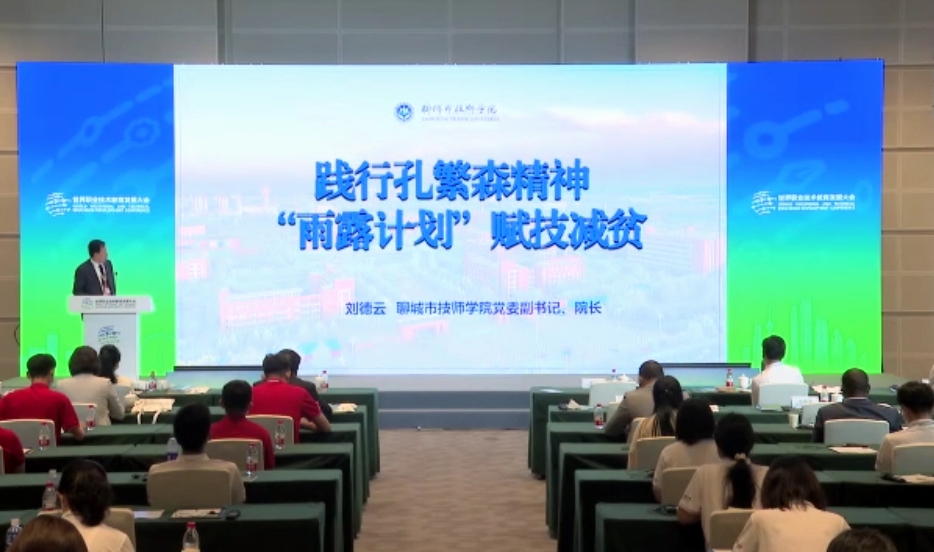 聊城市技师学院院长刘德云应邀出席此次大会,并在会上“职业教育助推全球减贫进程论坛”中作题为《践行孔繁森精神 “雨露计划”赋技减贫》的主题演讲。这是聊城市技师学院建校60余年以来首次参加国际性会议,不仅代表着学院形象“踏浪出海”,从此步入国际视野;更标志着鲁西大地职业教育“乘风破浪”,在世界上发出了响亮的“聊城声音”。