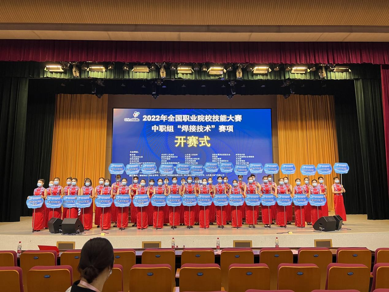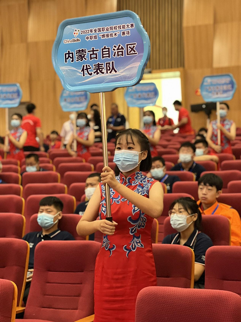 2022年全国职业院校技能大赛中职组“焊接技术”“建筑装饰”两个赛项在学院举办,刘嘉琪是通过系部报名,经过选拔才正式成为大赛志愿者的,她和其他39名同学在开(闭)赛式上担任礼仪志愿者,主要承担举牌、引导嘉宾和选手入场等相关服务工作。