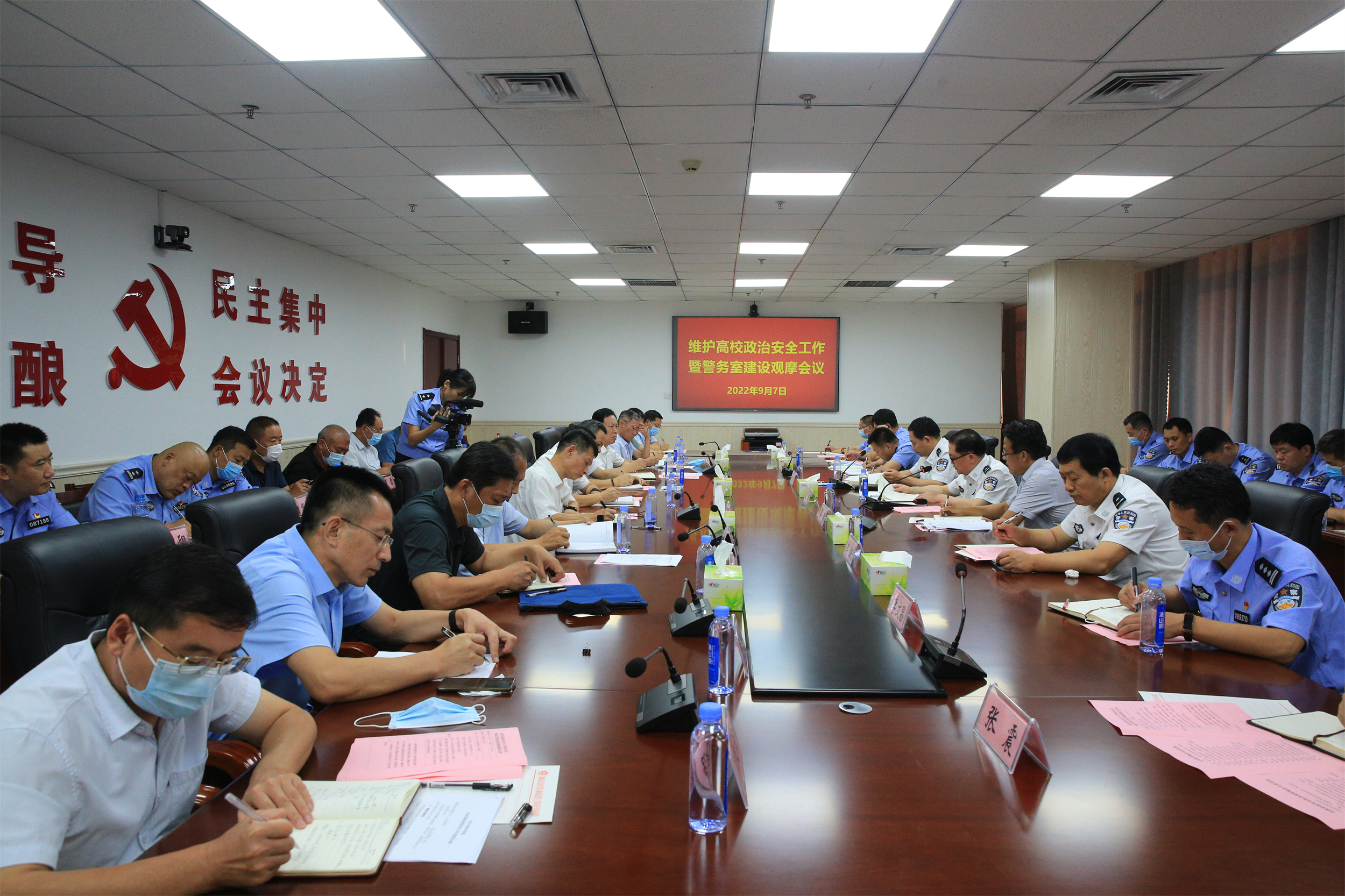 9月7日下午,聊城市维护高校政治安全工作联席会议暨高校警务室建设现场观摩会在我院举行。副市长、市公安局党委书记、局长李强出席会议并讲话,市公安局党委委员、副局长王峰主持会议,驻聊六所高校主要领导、分管校领导及保卫处负责人,市公安局指挥中心、政保、治安、技侦、网安、反恐支队主要负责人,东昌府区、开发区公安分局主要负责人、政保大队大队长参加会议。学院党委副书记、院长刘德云致欢迎辞,党委委员、副院长崔杰、保卫部门负责人参加。