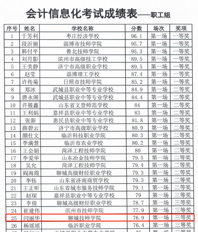 9月17日,学院经济管理系师生在山东省“技能兴鲁”职业技能大赛---第三届会计综合职业技能竞赛中荣获佳绩。由闫丽华、王吉对两位老师指导学生邵子雪、冯欣茹、李艳红三位学生获二等奖。闫丽华老师获会计信息化赛项职工组三等奖。