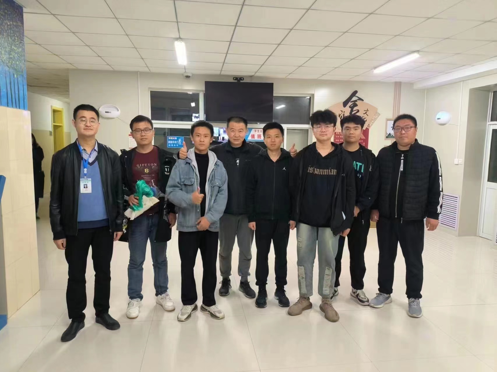 凌晨3点多,王达老师从群里看到大家还在忙碌,他便穿好衣服,带着热气腾腾的饭菜,开车来到学校为大家送上迟来的晚饭,现场洋溢着温馨气氛。