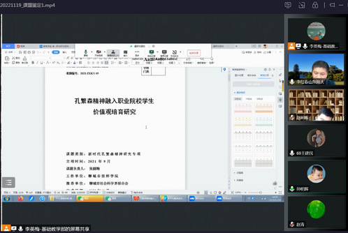 受疫情影响,鉴定会采用线上评审方式举行。课题组在会议平台通过分享屏幕的方式对研究成果进行线上展示和答辩,每个课题汇报时间5分钟左右,评委根据汇报情况和审阅课题研究材料的情况提问,课题组主持人与评委进行在线交流,回答评委提问,评委酌情点评和指导。