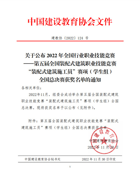 11月27日,第五届全国装配式建筑职业技能竞赛“装配式建筑施工员”赛项(学生组)落下帷幕。在李国秀、原筱丽两位老师的指导下,建筑工程系2019级大专建筑5班雷文轩斩获佳绩,获得三等奖。