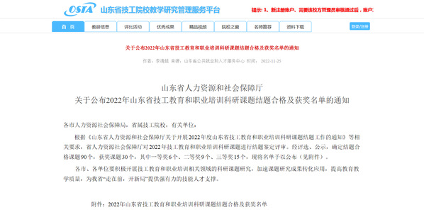 近日,山东省人社厅公布2022年山东省技工教育和职业培训科研课题结题合格及获奖名单。