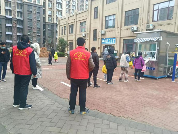 为了防止人群聚集,他们在现场引导群众有序排队,进行温馨劝导,保证人与人间隔一米以上,核酸检测现场井然有序。他们为居家隔离住户上门粘贴服务卡,运送爱心蔬菜,解答居民疑问,用心用情用力助力我市疫情防控工作。