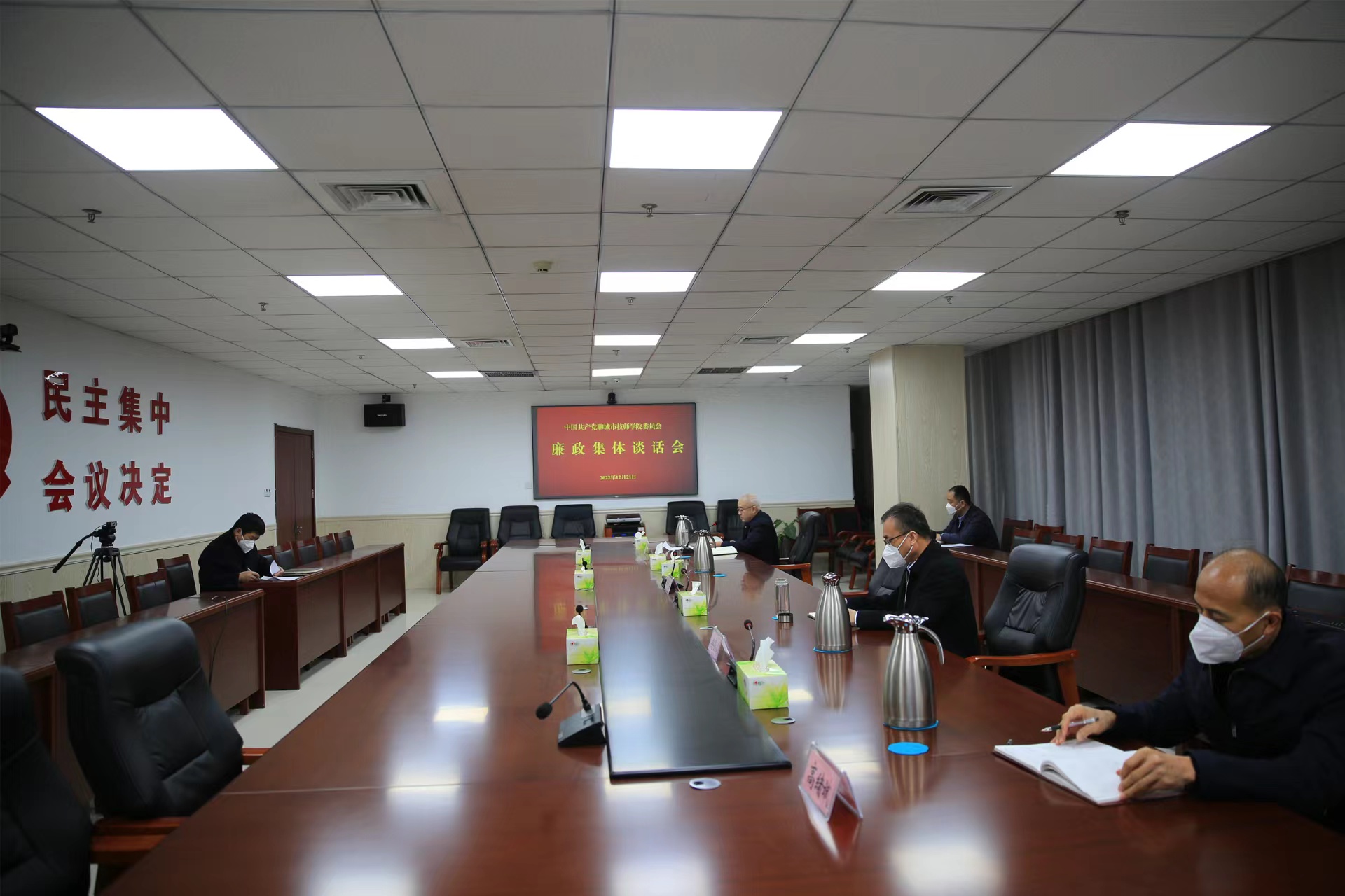 为进一步推进党风廉政建设,切实强化廉洁履职意识,筑牢拒腐防变的思想道德防线,12月21日,学院召开廉政集体谈话线上会议,学院党委副书记、院长刘德云与各支部书记集体谈话。党委委员、纪委书记、监察专员于豪胜主持会议。