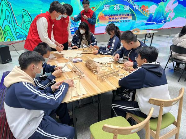 学生们拿着自己制作的廊桥,脸上洋溢着成功的喜悦。“参加廊桥制作活动,我不仅从中了解了廊桥的历史,还感受到运河文化的魅力。在今后的学习中,我一定会更加努力,积极发扬工匠精神。”信息工程系21级学生蒋天成说。