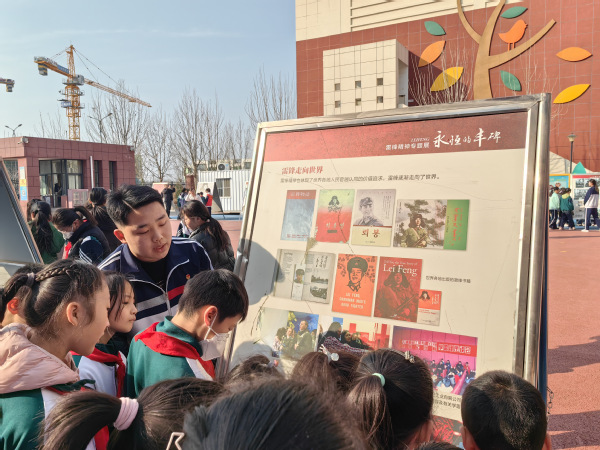 活动现场,38块雷锋事迹移动展板整齐地陈列在奥森小学教学楼前的空地两侧,这些都是雷锋同志的生活实物图片,静静讲述着雷锋同志一生的故事。小学生们纷纷围到展板前。在认真听着现场讲解,有的还伸手触摸着展板上的雷锋实物图片。一位小同学感叹:“雷锋是个爱节俭、有爱心的人,我也要向雷锋学习,做个雷锋式的好少年。”