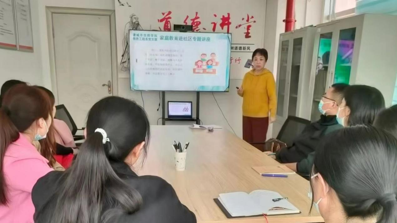 3月30日下午,信息工程系党支部在东昌府区古楼街道湖西社区开展“我为群众办实事,家庭教育进社区”活动。聊城市优秀教师、学院模范班主任、信息工程系教师刘俊萍为社区家长们讲授“如何提高孩子的学习内动力”家庭教育专题讲座。