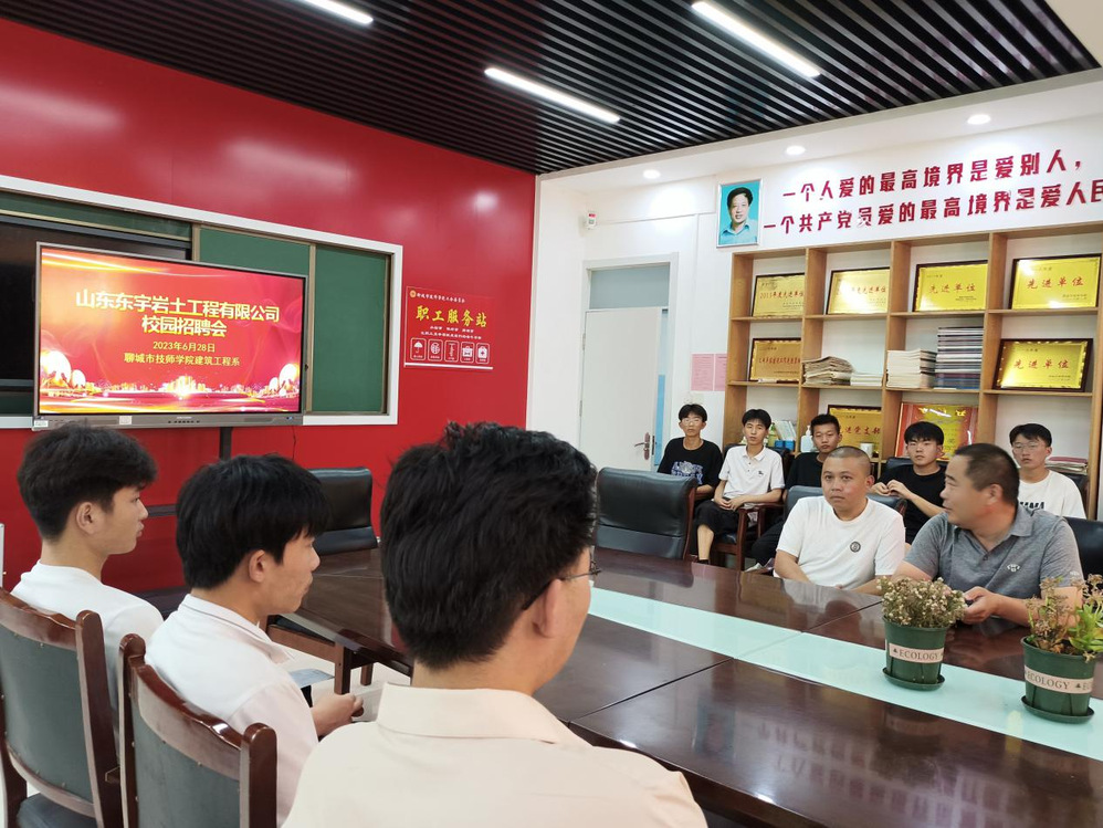 “我发现,聊城市技师学院建筑工程系学生专业素养比较高,同学们都非常重视自己的专业技能提升,取得了测量员技能证书、1+X建筑信息模型(BIM)、建筑制图与识图职业资格初级证书。还有很多同学参加过很多专业比赛,并取得了不错的成绩,无论是他们身上的具有的实践技能还是工匠精神,都值得我们去点赞。”该公司负责人韩冠印说。经过面试,山东东宇岩土工程有限公司选中了9名同学。