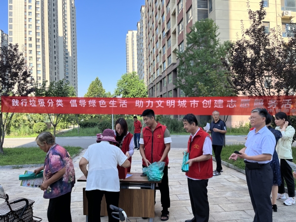 8月29日,学院到平安社区陈口家园小区开展主题为“践行垃圾分类 倡导绿色生活”的志愿服务活动。宣传部、工会、建筑工程系共20余名志愿者走进社区,宣传垃圾分类知识,为文明城市创建增底色、添亮色。