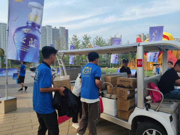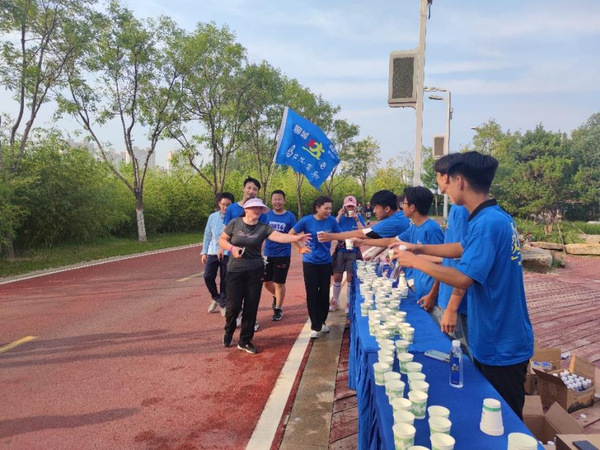早上5点,同学们就来到了活动现场,从学生变成了现场的“蓝精灵”。他们迅速集合、分配任务,搬送物品、布置场地、传递补给品、清理垃圾、路线引导……这群“蓝精灵”遍布活动的各个点位,他们坚守在各自任务点上,确保活动顺利有序进行。