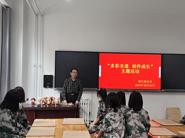 为了进一步加强广大青少年爱国主义教育,增强青少年的民族自豪感,10月12日,现代服务系特邀马官屯泥人制作工艺传承人沈语先生开展“多彩非遗 相伴成长”活动。
