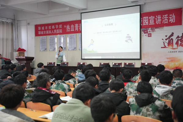 11月13日,电气工程系联合聊城市第四人民医院,开展“热血青春 健康先行”心理健康进校园宣讲活动,200余名新生代表参加。