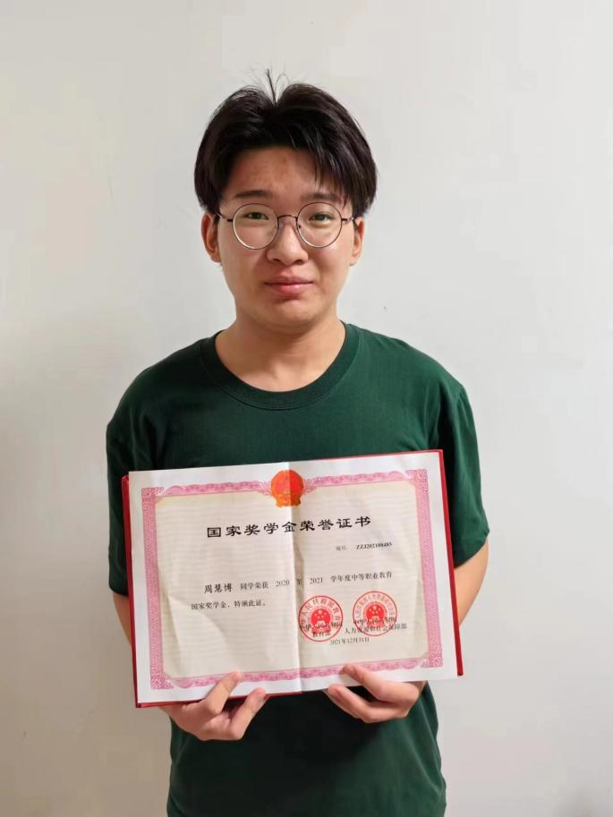 功夫不负有心人,一轮轮枯燥的训练他硬扛了下来,努力一点点汇集为成功的火花。他先后获得了全国跨境电商创新创业能力大赛二等奖、山东省新一代信息技术创新应用大赛——“京东杯”BI技术应用赛项二等奖、聊城市中等职业院校技能大赛电子商务技能赛项三等奖等多项荣誉。凭借着名列前茅的学习成绩和良好的综合素质,周慧博在全院优秀学生中脱颖而出,获得了2021年全国技工类院校学生奖学金。他终于明白了,小时候读过的“笨鸟先飞”的故事,原来是通往成功之路的一个朴素的真理,也愈发意识到,要想突破自己,必须要具备一颗有毅力的恒心。